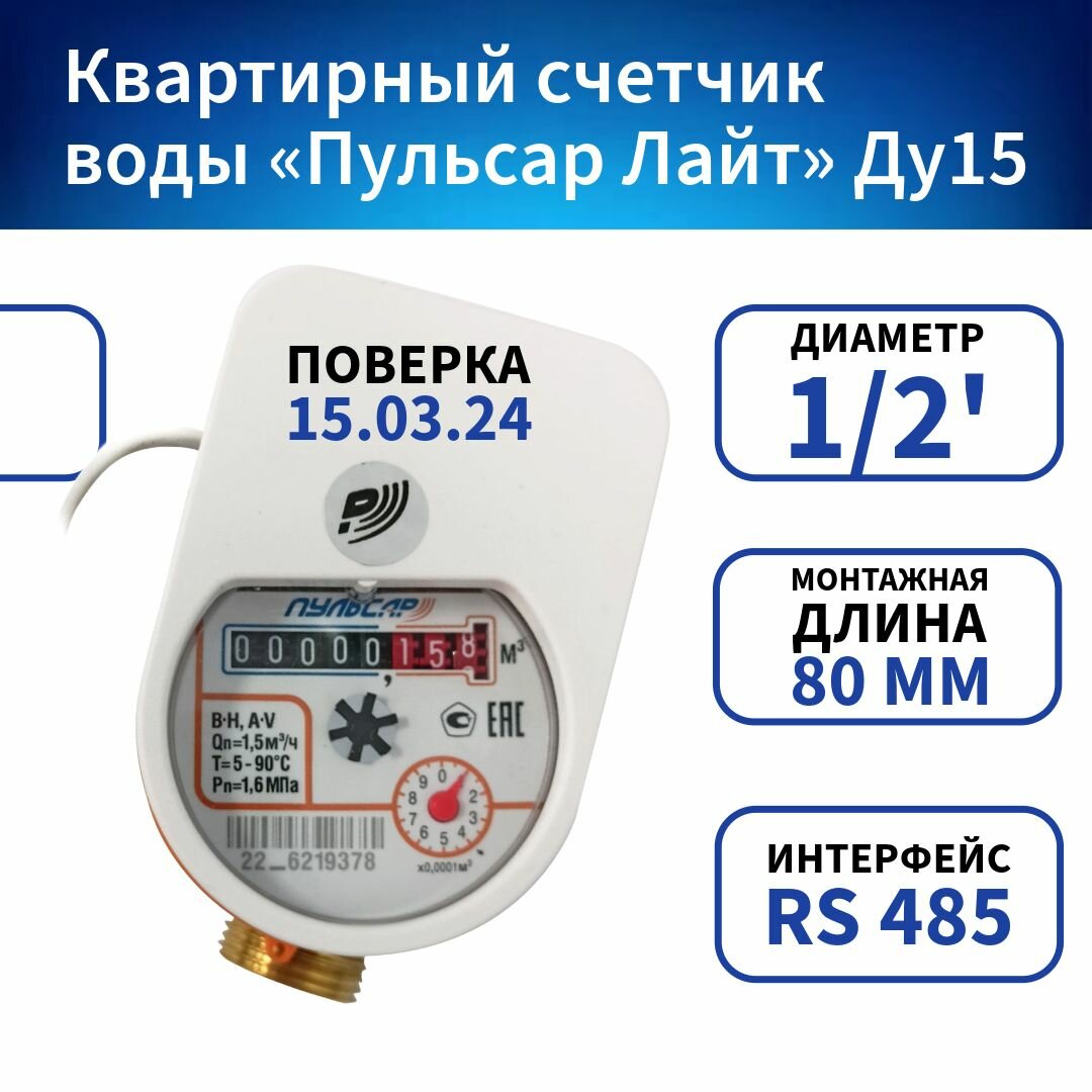 Квартирный счетчик воды Пульсар Лайт Ду15 RS-485, Qn1,5 м3/ч, L80мм интересное: