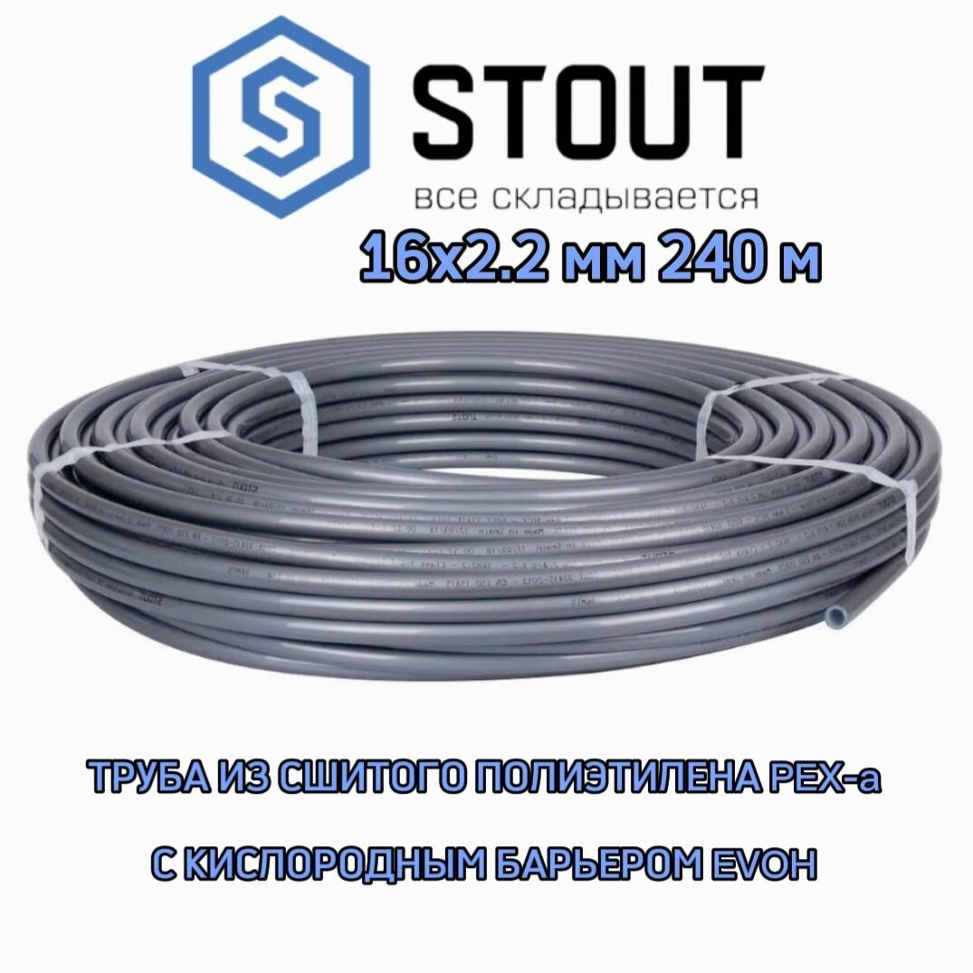 Купить Труба STOUT 16(2,2) для теплого пола из сшитого полиэтилена PEX-a/EVOH, серая бухта 240 метров