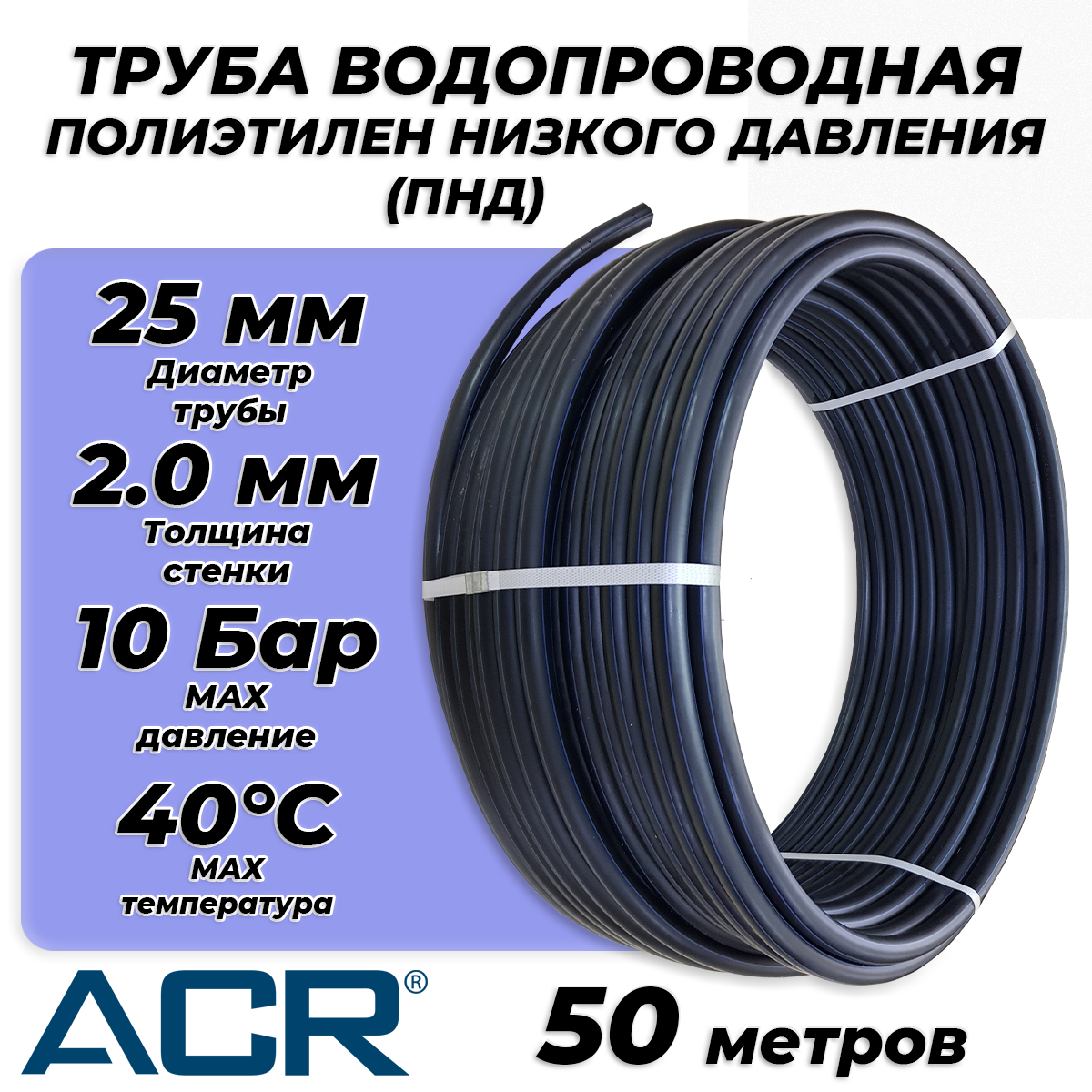 Купить Труба из полиэтилена низкого давления ПЭ80 - 25x2.0 (50м, ПНД, SDR 13.6, PN10, t40°C)
