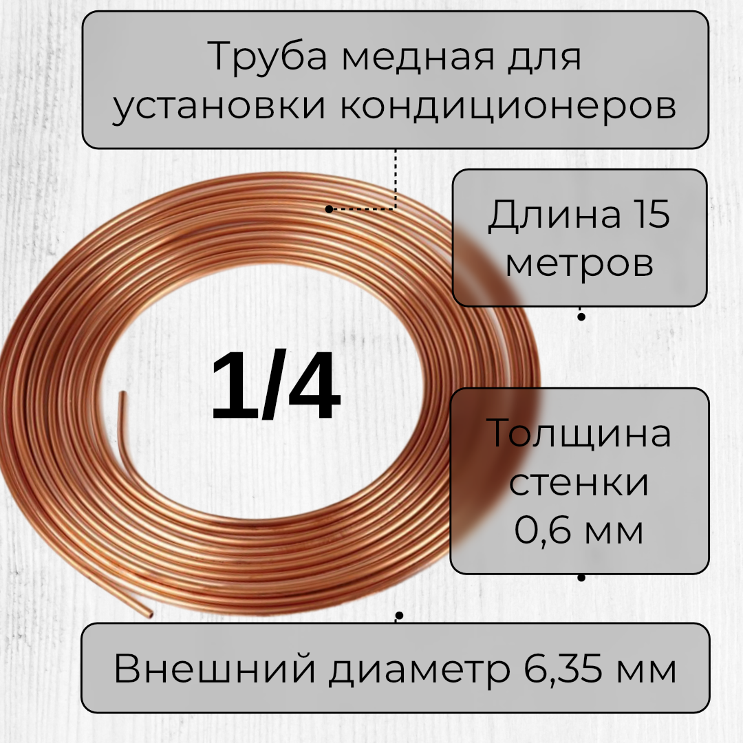 Труба медная для кондиционера 1/4 (6,35х0,6х15м) бухта 15 метров интересное: