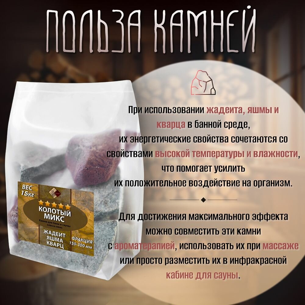 Микс камни для бани Жадеит Яшма Кварц колотые 8-15 см упаковка 15 кг