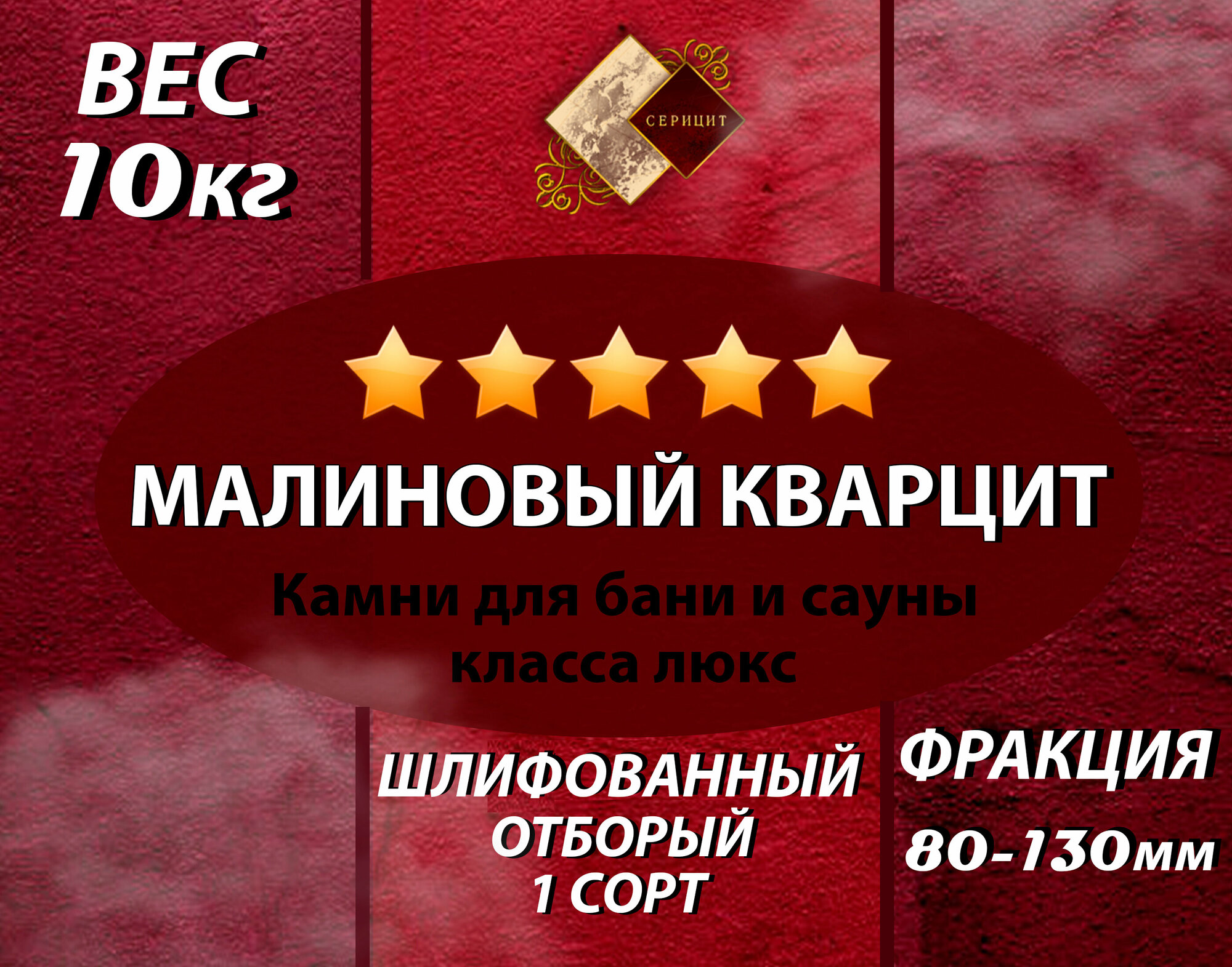 Камни для бани Малиновый Кварцит шлифованный 10 кг. (фракция 80-130 мм.) интересное: