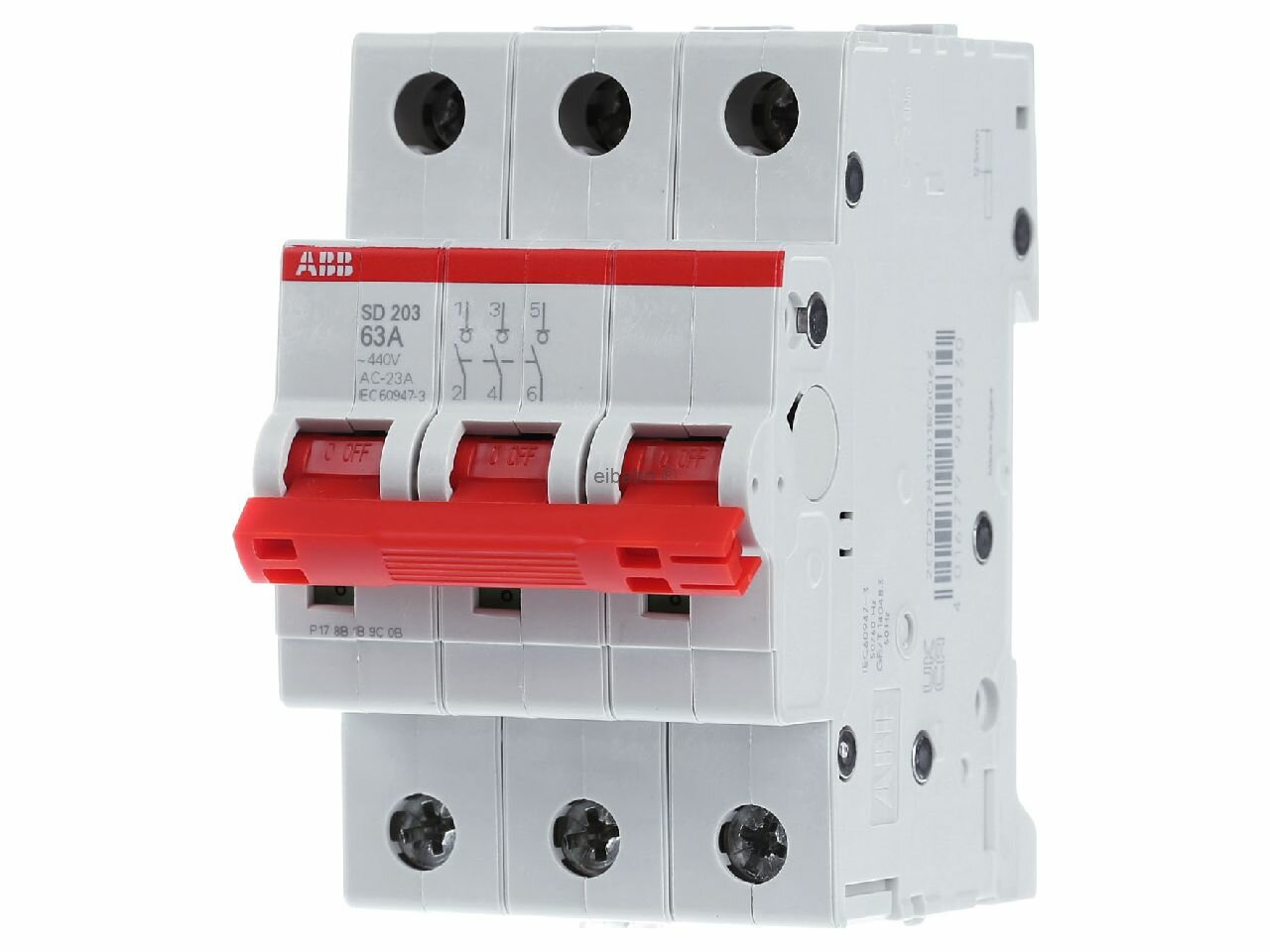SD203/63 Рубильник 3-полюсный модульный 63А (красный рычаг) ABB, 2CDD283101R0063