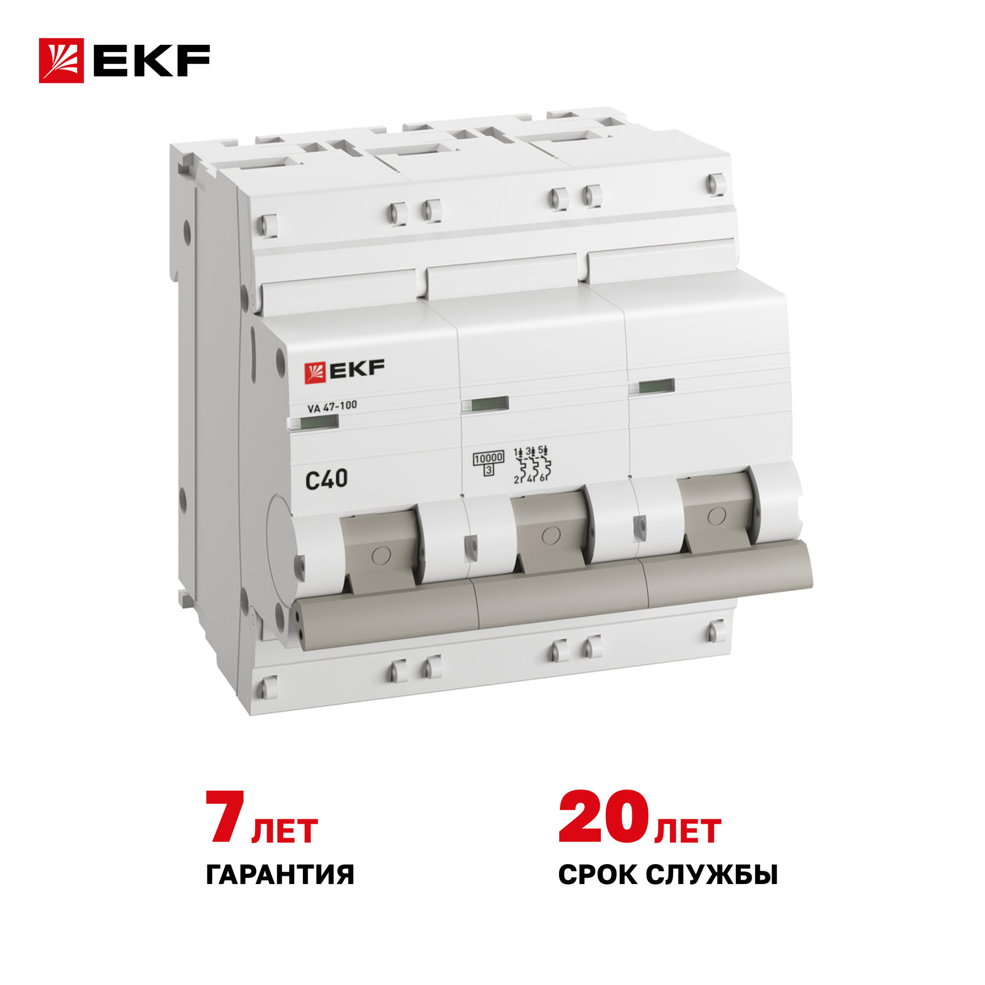 Автоматический выключатель Ekf 3п C 40А 10кА ВА 47-100 PROxima, mcb47100-3-40C-pro