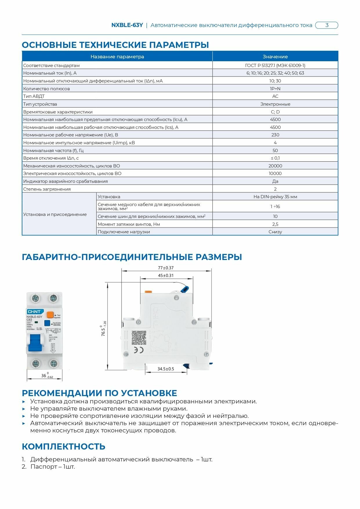 СохранитьВыключатель автоматический дифференциального тока 1п+N C 10А 30мА электрон. тип AC 4.5кА NXBLE-63Y (R) | код 105541 | CHINT (2шт.в упак.) интересное: