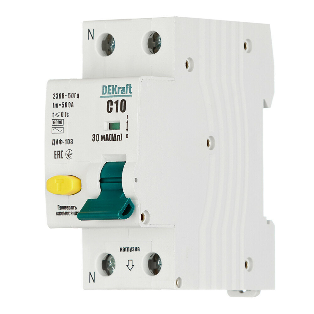 Автомат дифференциальный Dekraft ДИФ-103 (16228DEK) 10А 30 мА 1P+N тип A 6 кА