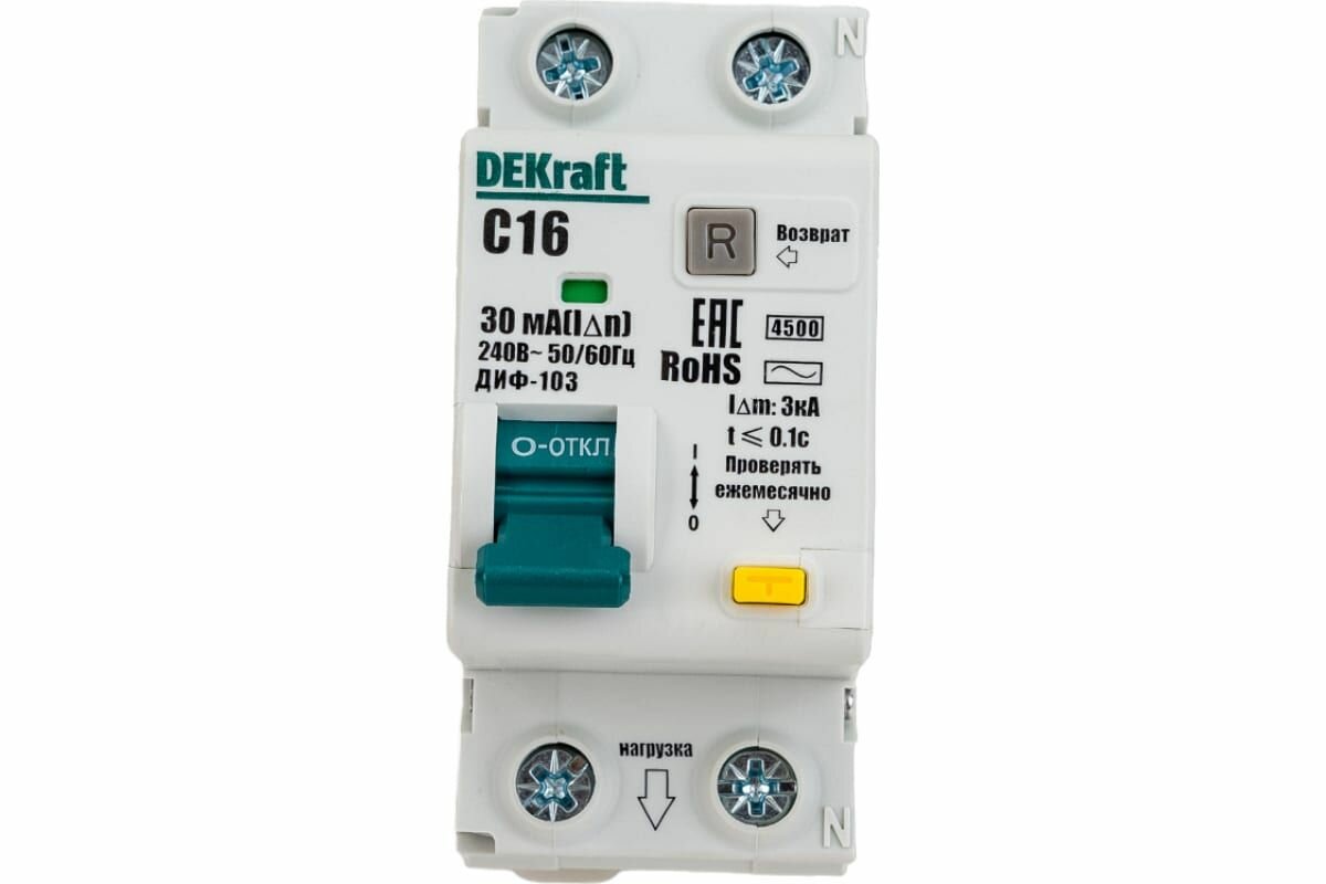 Автомат дифференциальный Dekraft ДИФ-103 (16228DEK) 10А 30 мА 1P+N тип A 6 кА