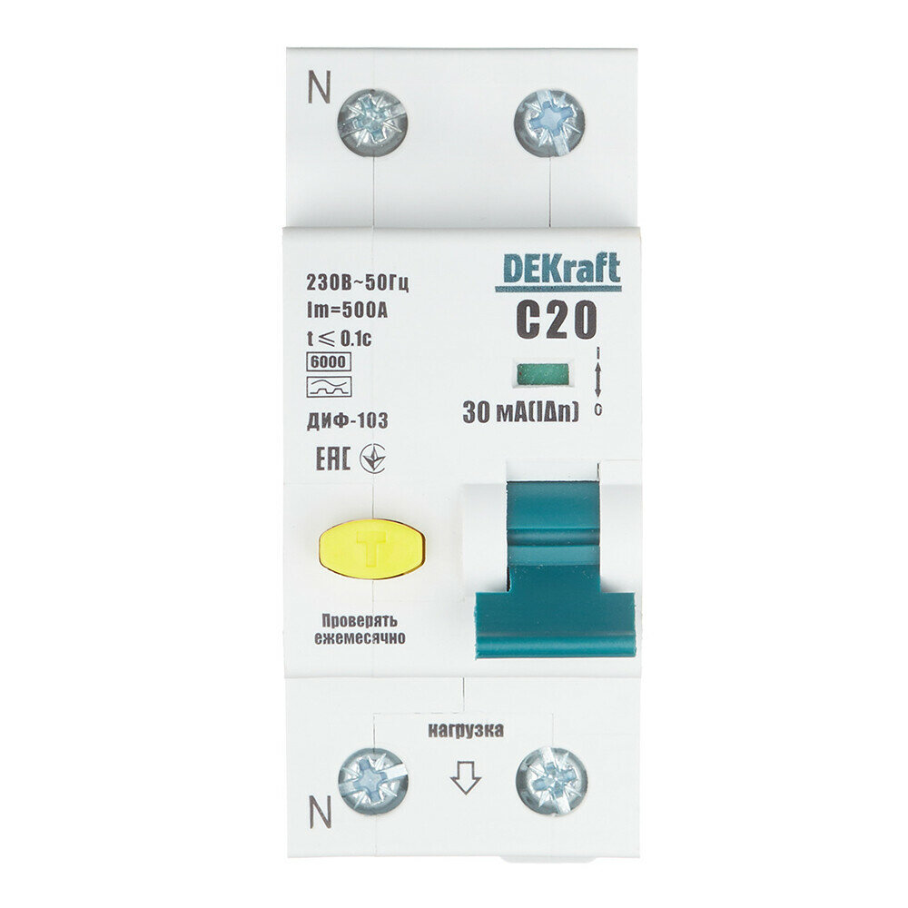 Купить Дифференциальный автоматический выключатель DEKraft ДИФ-103 1P+N 20А 30мА 6кА класс AC