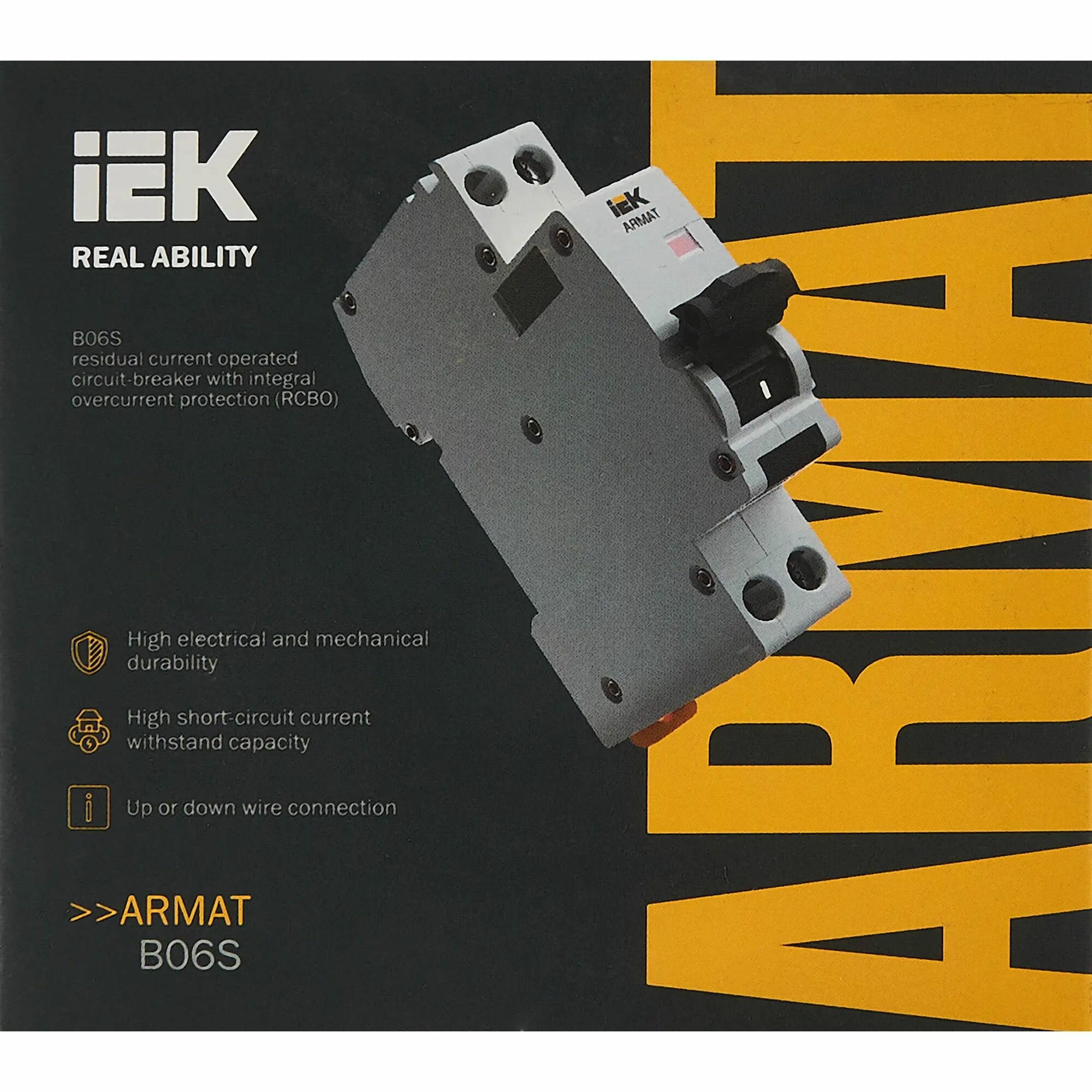 Автоматический выключатель дифф. тока IEK 16А АВДТ B06S 30мА тип AC 6кА ARMAT AR-B06S-1N-C16C030