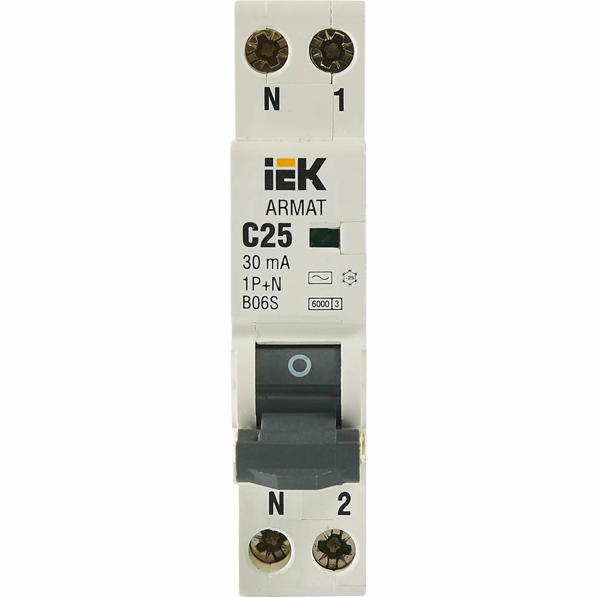 AR-B06S-1N-C20C030 Дифференциальный автоматический выключатель IEK ARMAT B06S 1П+N 20А 30мА, тип AC, 6кА, C