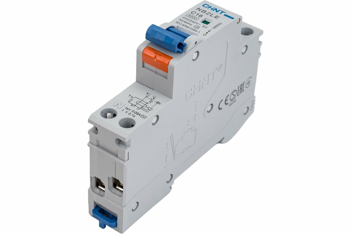 Купить 689002 Дифференциальный автоматический выключатель CHINT NB2LE 1П+N 16А 30мА, тип AC, 4.5кА, C, электронный