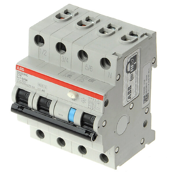 DS203NC C6 AC30 дифференциальный автоматический выключатель 3P+N, 6A, 30mA, тип AC, 6kA (хар-ка C) ABB, 2CSR256040R1064