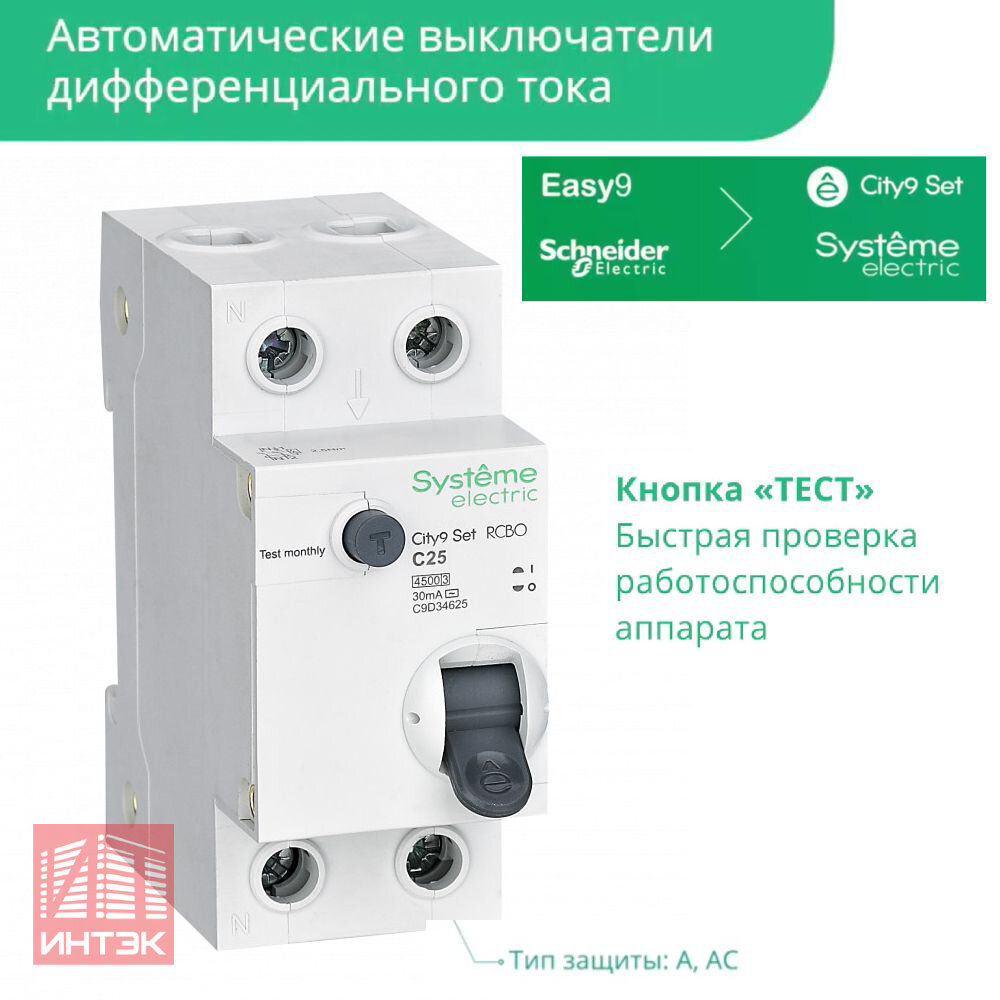 Дифф. автомат. выкл. C9D34625 Systeme Electric City9 Set 1P+N 25А 30мА класс АC