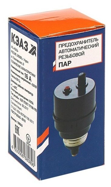 Ниже Вы можете прочитать отзывы на КЭАЗ Предохранитель авт. резьбовой ПАР-16 пробка автоматическая 100043, ознакомится с подробными характеристиками, посмотреть интересные обзоры и фотографии на КЭАЗ Предохранитель авт. резьбовой ПАР-16 пробка автоматическая 100043.