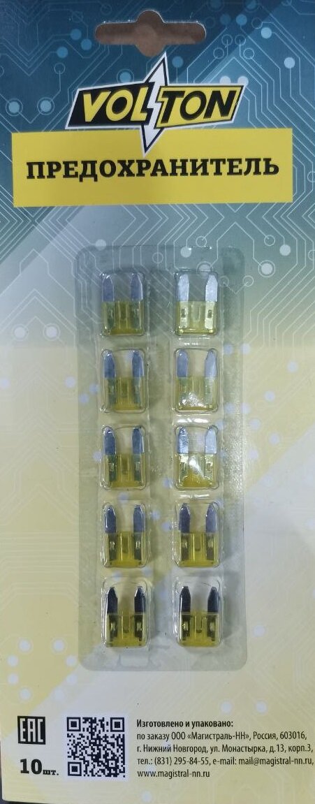 СохранитьПредохранитель MINI "VOLTON" блистер 10 шт. 20A интересное: