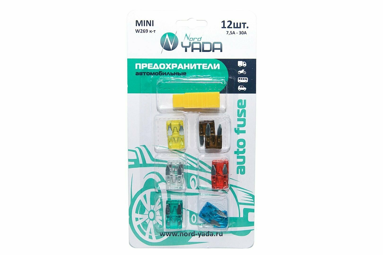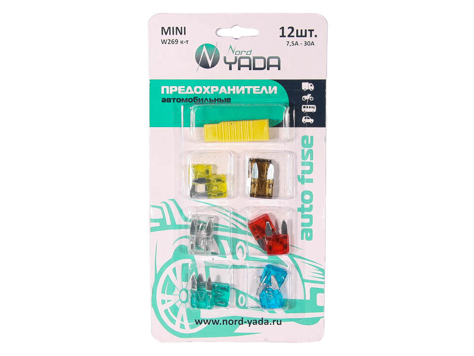 Предохранитель MINI W269 к-т12шт в блистере с пинцетом ( 7.5,10,15,20,25,30 Ампер) NORD YADA