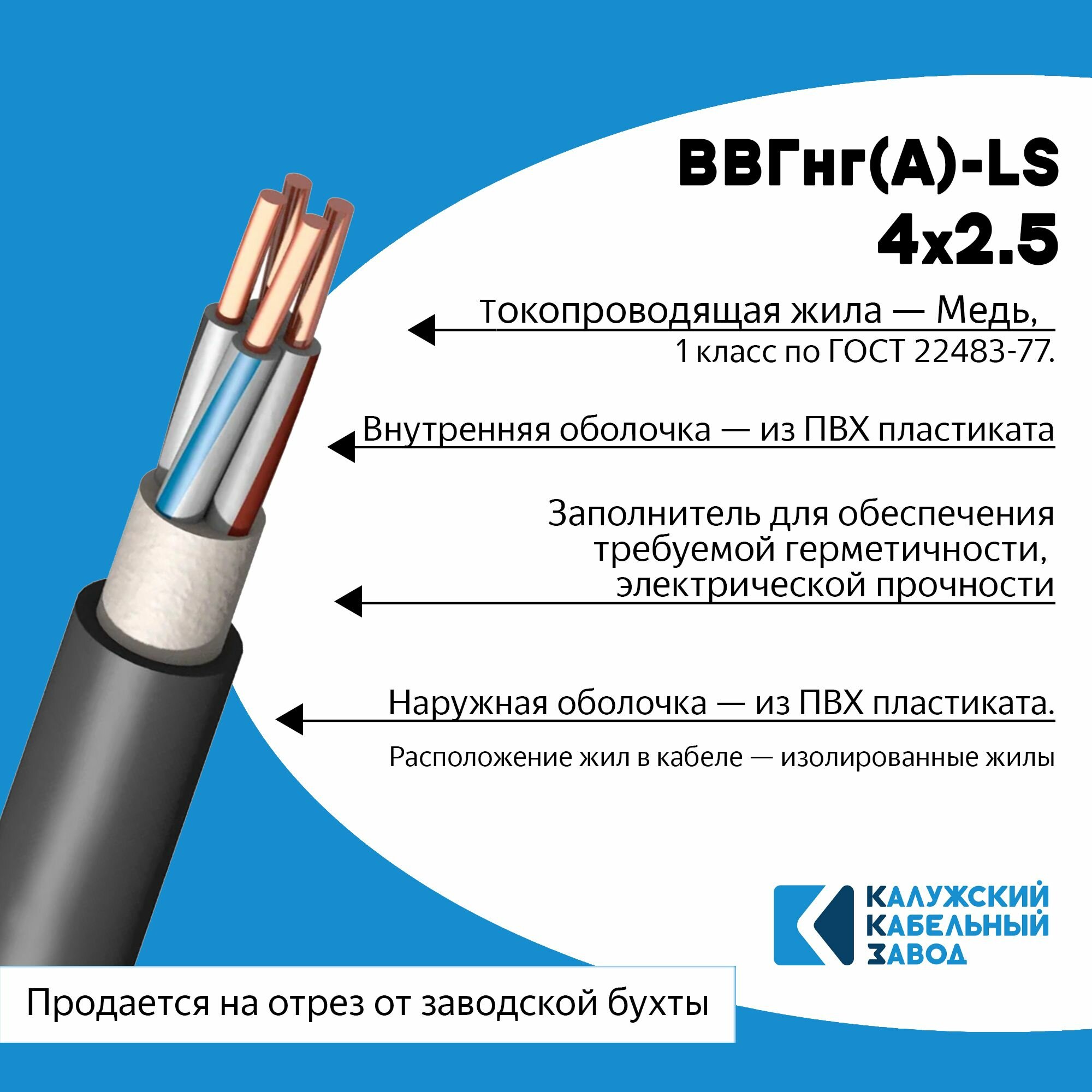 Силовой Кабель ВВГнг(А)-LS 4х2.5 ГОСТ 50метров Калужский кабельный завод