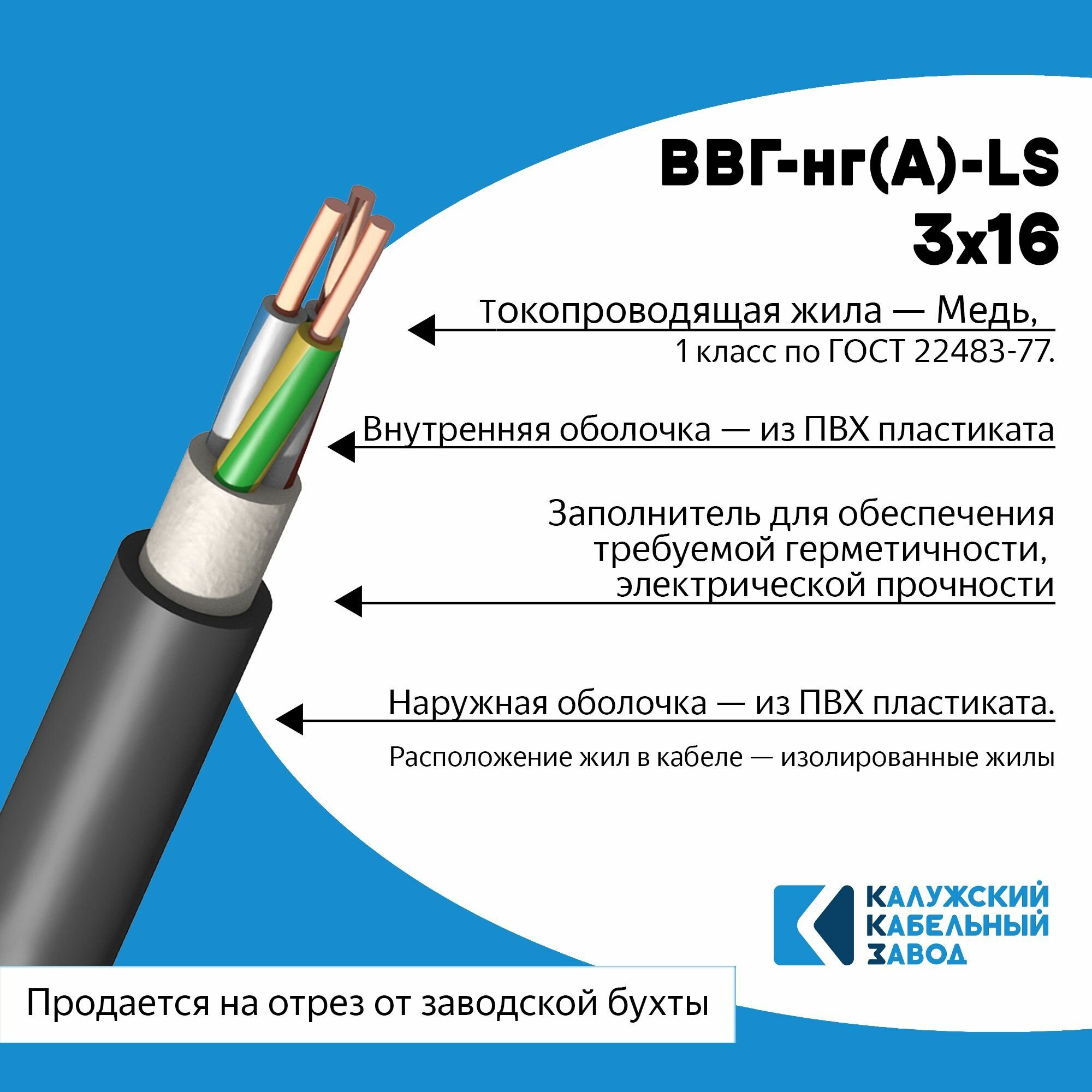 Купить Силовой кабель ВВГнг(А)-LS 3х16 10метров ГОСТ Калужский кабельный завод