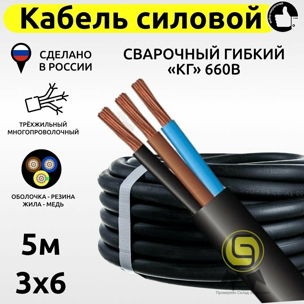 Купить Кабель силовой сварочный гибкий КГ 3х6 660В (5м)
