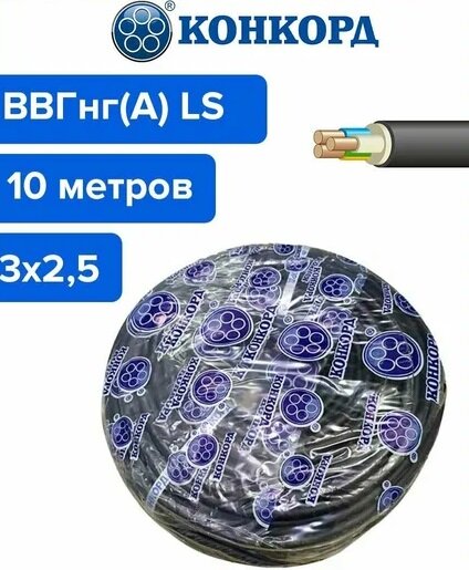 Кабель ВВГнг(А)-LS 3x2,5 10м конкорд ГОСТ круглый медный