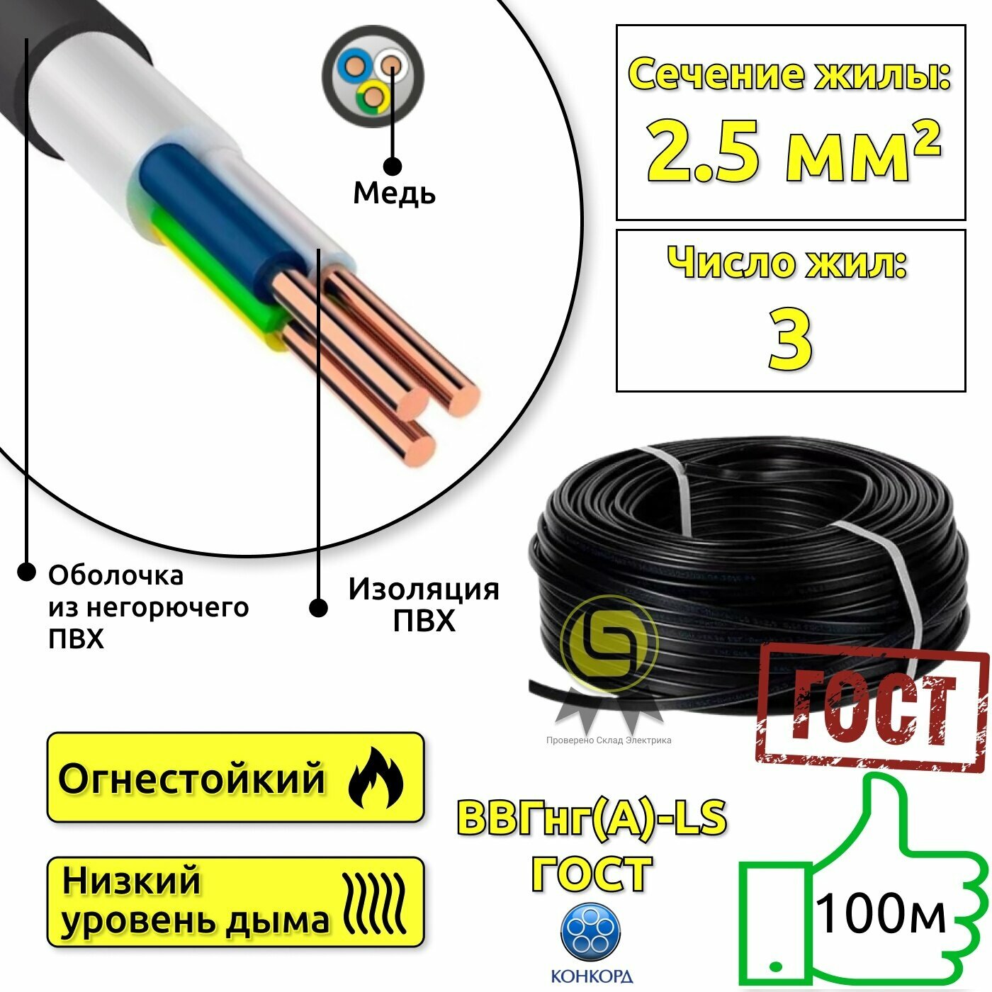 Купить Кабель ВВГнг(А)-LS 3x2,5 100м конкорд ГОСТ круглый медный