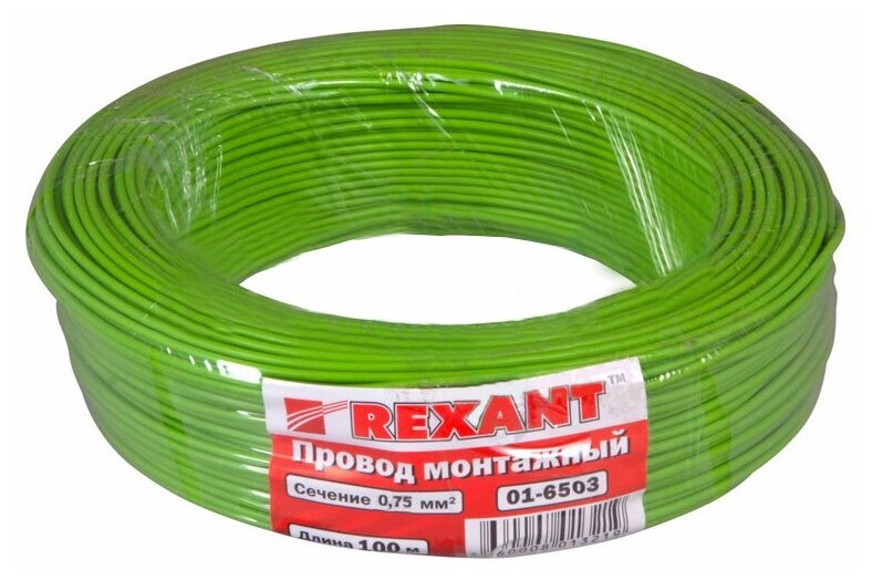 Провод Rexant ПГВА 1х0,75 кв. мм, зеленый (бухта 100 м)