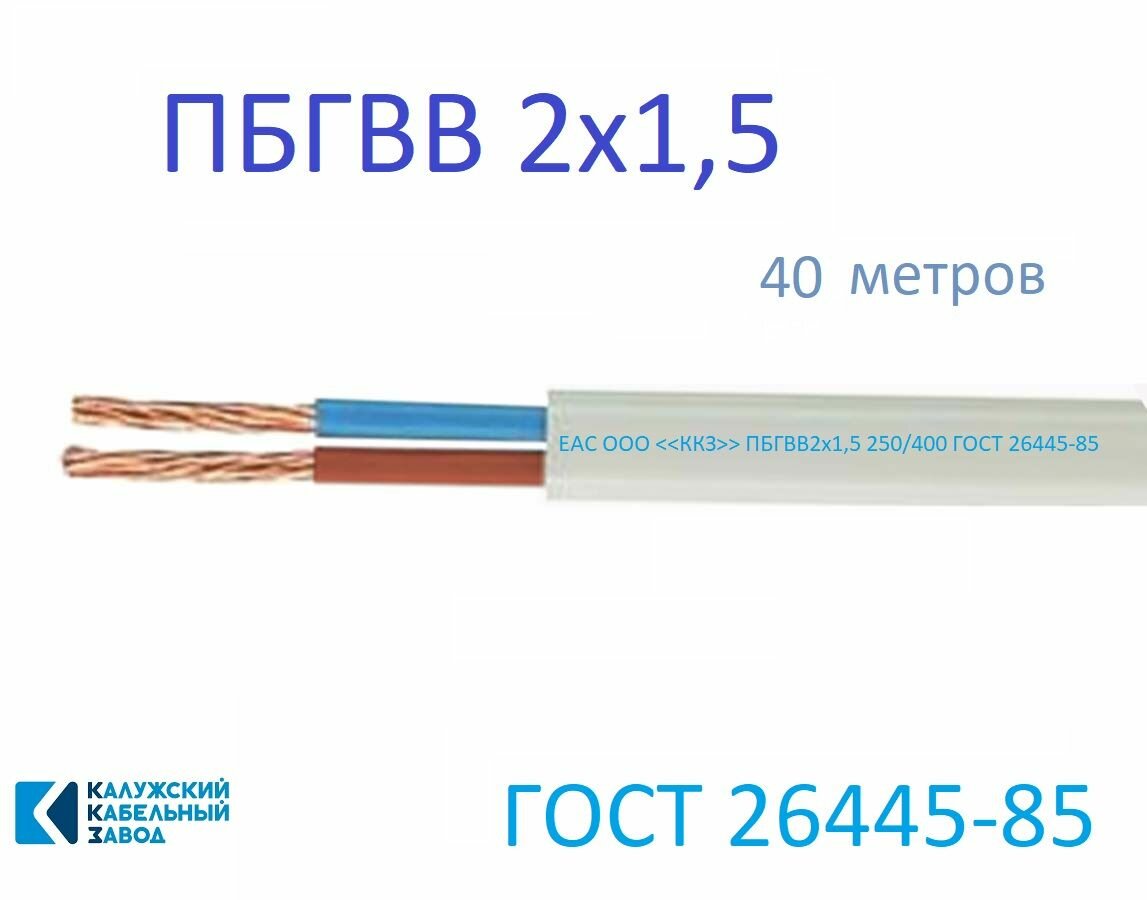 Провод пбгвв 2х1,5 ГОСТ Калужский Кабельный Завод (Белый) 40 метров
