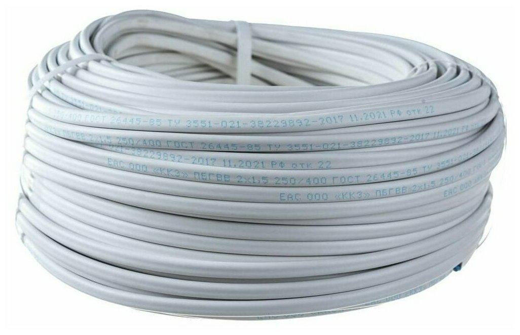 Провод пбгвв 2х2,5 ГОСТ Калужский Кабельный Завод (Белый) 15 метров