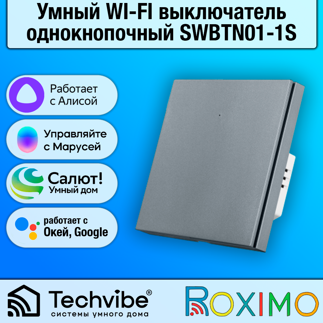 СохранитьУмный выключатель ROXIMO, однокнопочный, серый, SWBTN01-1S интересное: