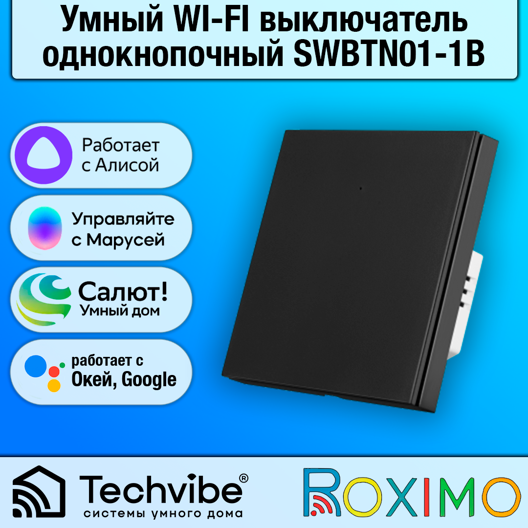 СохранитьУмный выключатель ROXIMO, однокнопочный, черный, SWBTN01-1B интересное: