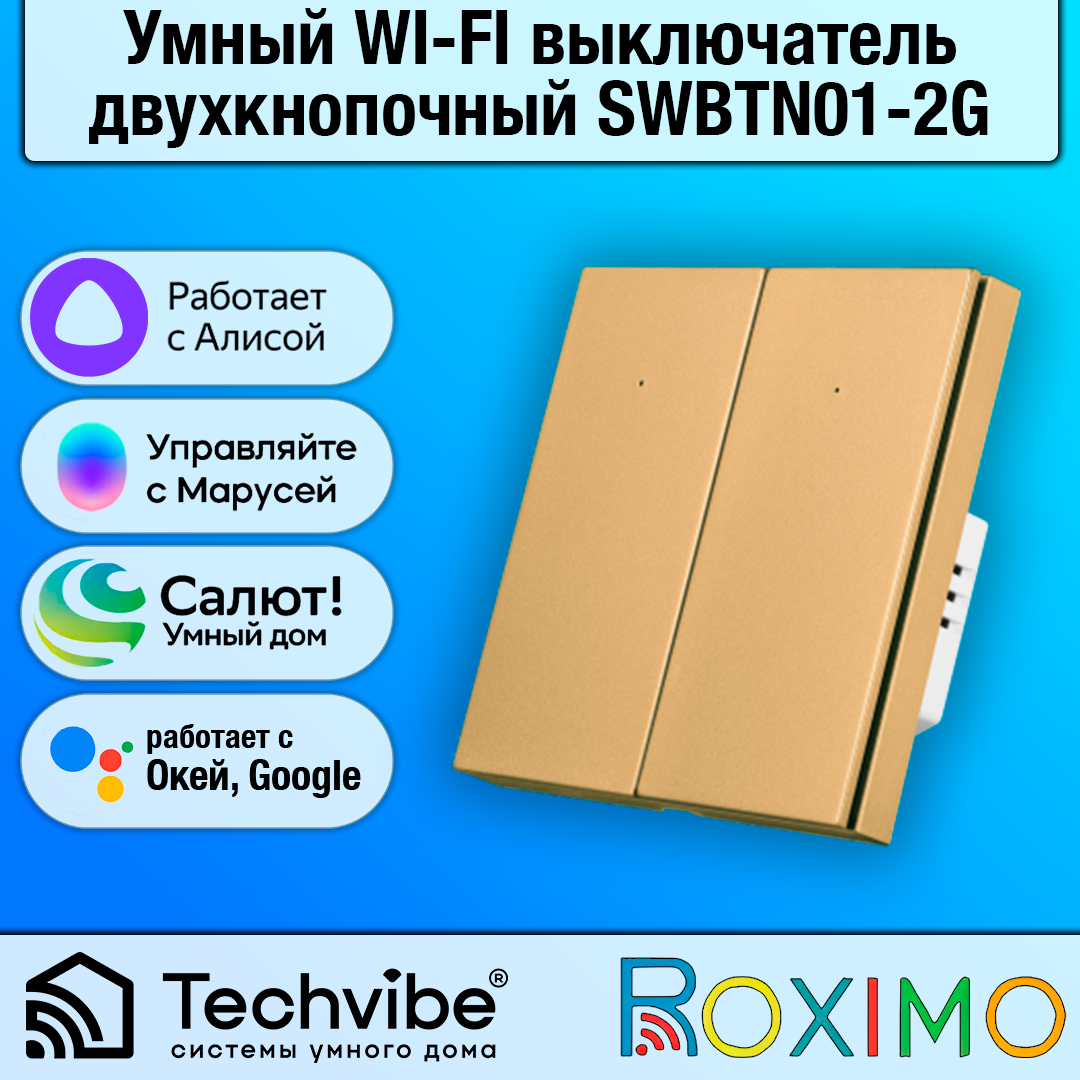СохранитьУмный выключатель ROXIMO, двухкнопочный, золотой, SWBTN01-2G интересное: