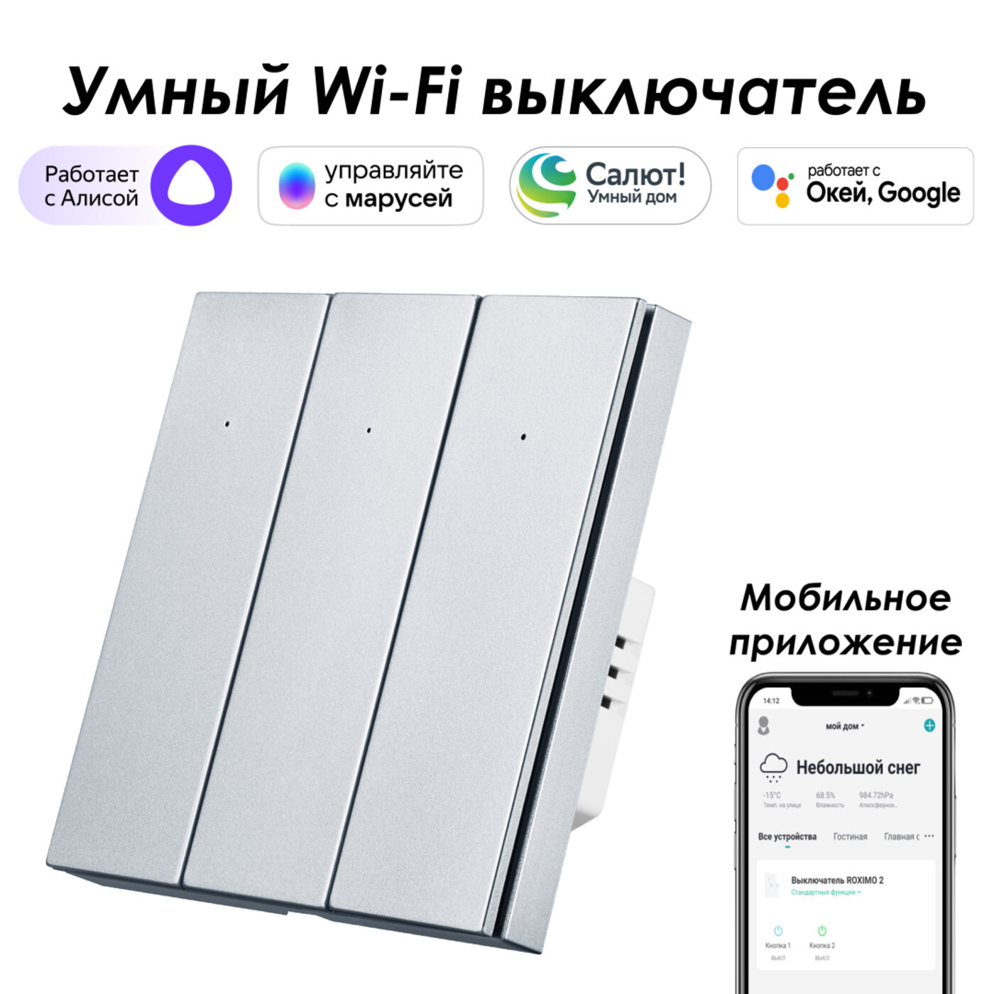 Умный выключатель ROXIMO, трехкнопочный, серый, SWBTN01-3S