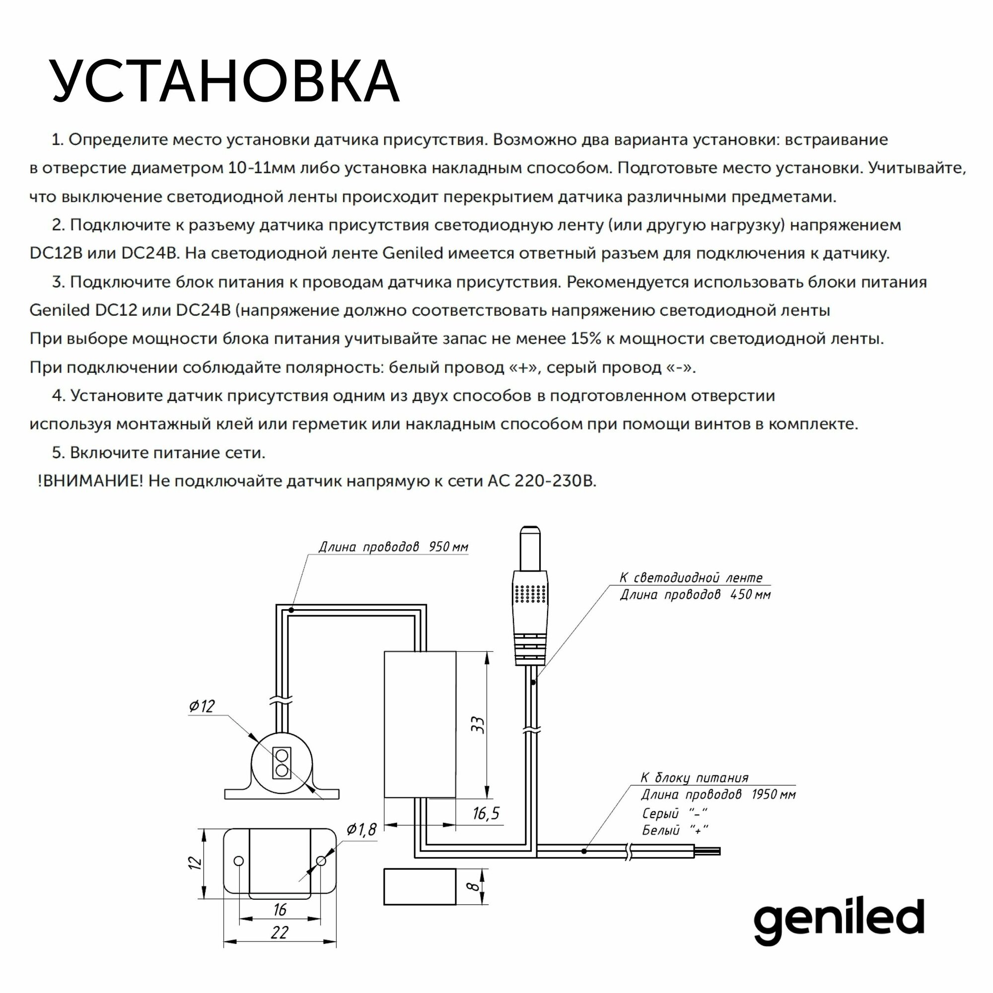 Бесконтактный диммируемый сенсорный выключатель с регулировкой яркости для светодиодной ленты