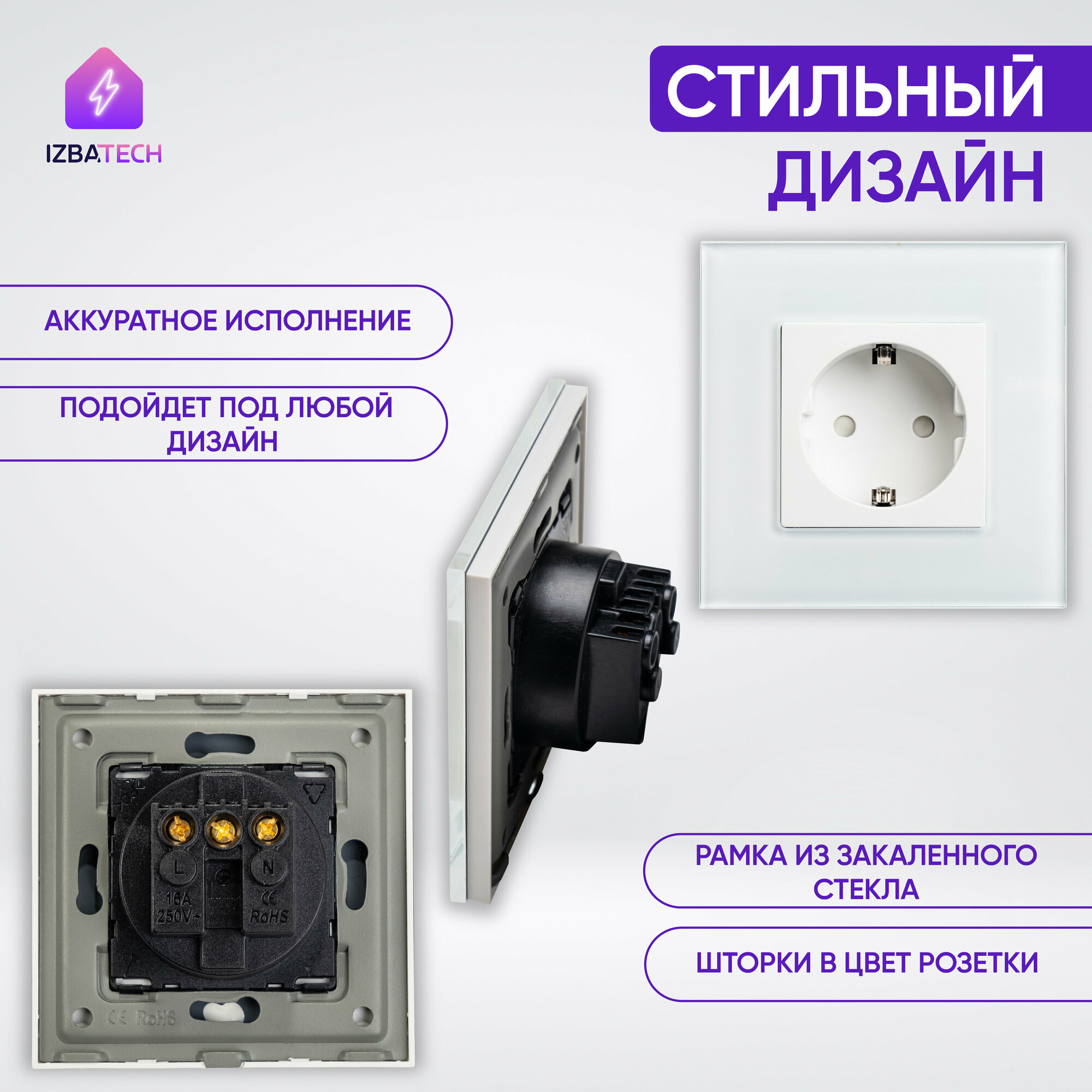 СохранитьВстраиваемая розетка с заземлением и защитой от детей на 16А одинарная стеклянная белая интересное: