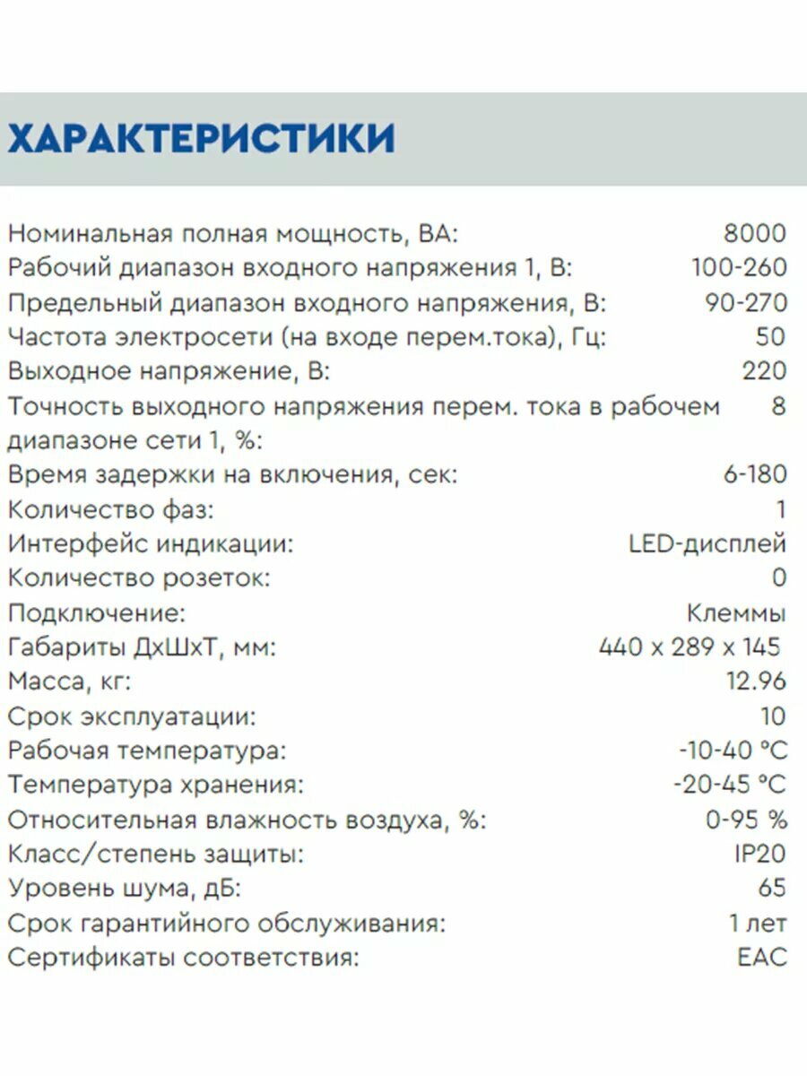 Стабилизатор напряжения релейный AVR SLIM 8000RW интересное: