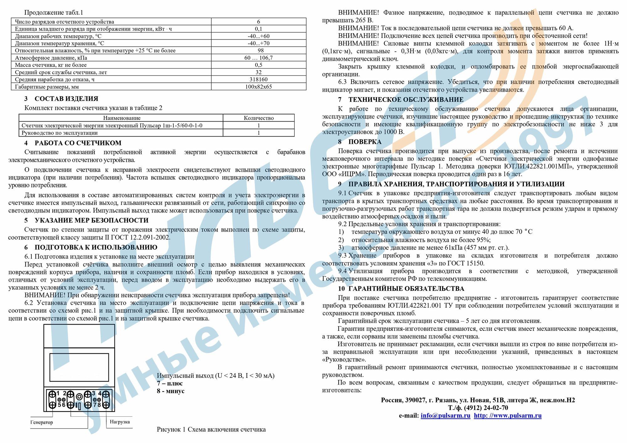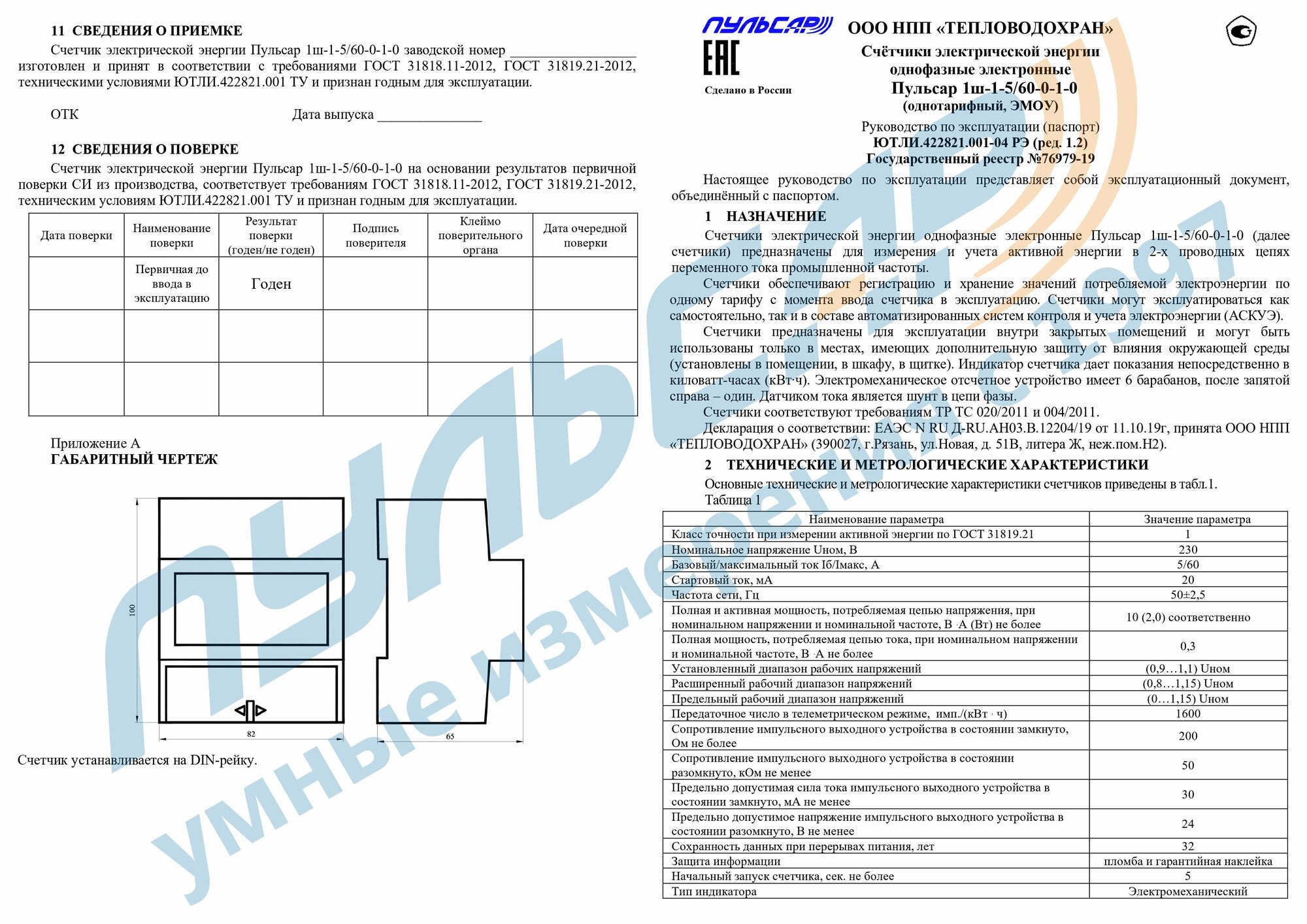 Счетчик Пульсар1 Ш-5/60-0-Д-1-1 1фаз/1т/5-60А (рейка) интересное: