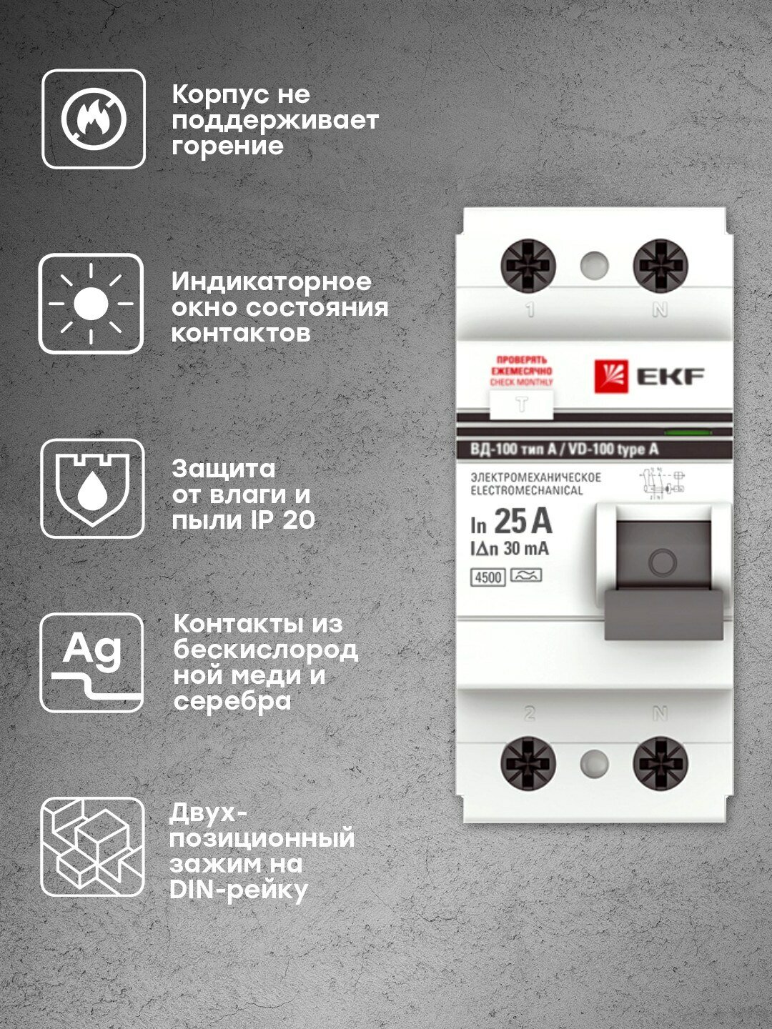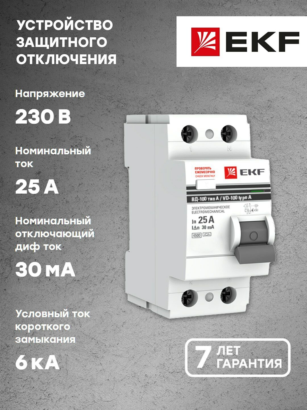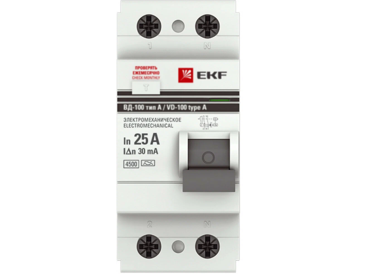УЗО EKF 30мА тип A ВД-100, 25 А, 2 полюса