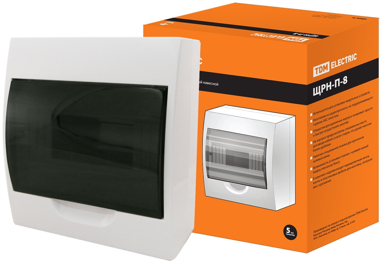 ТДМ Электрик ЩРН-П-8 щит навесной пластиковый RAL9016 IP41 / TDM Electric ЩРН-П-8 бокс распределительный накладной пластиковый на 8 мест RAL9016 IP41