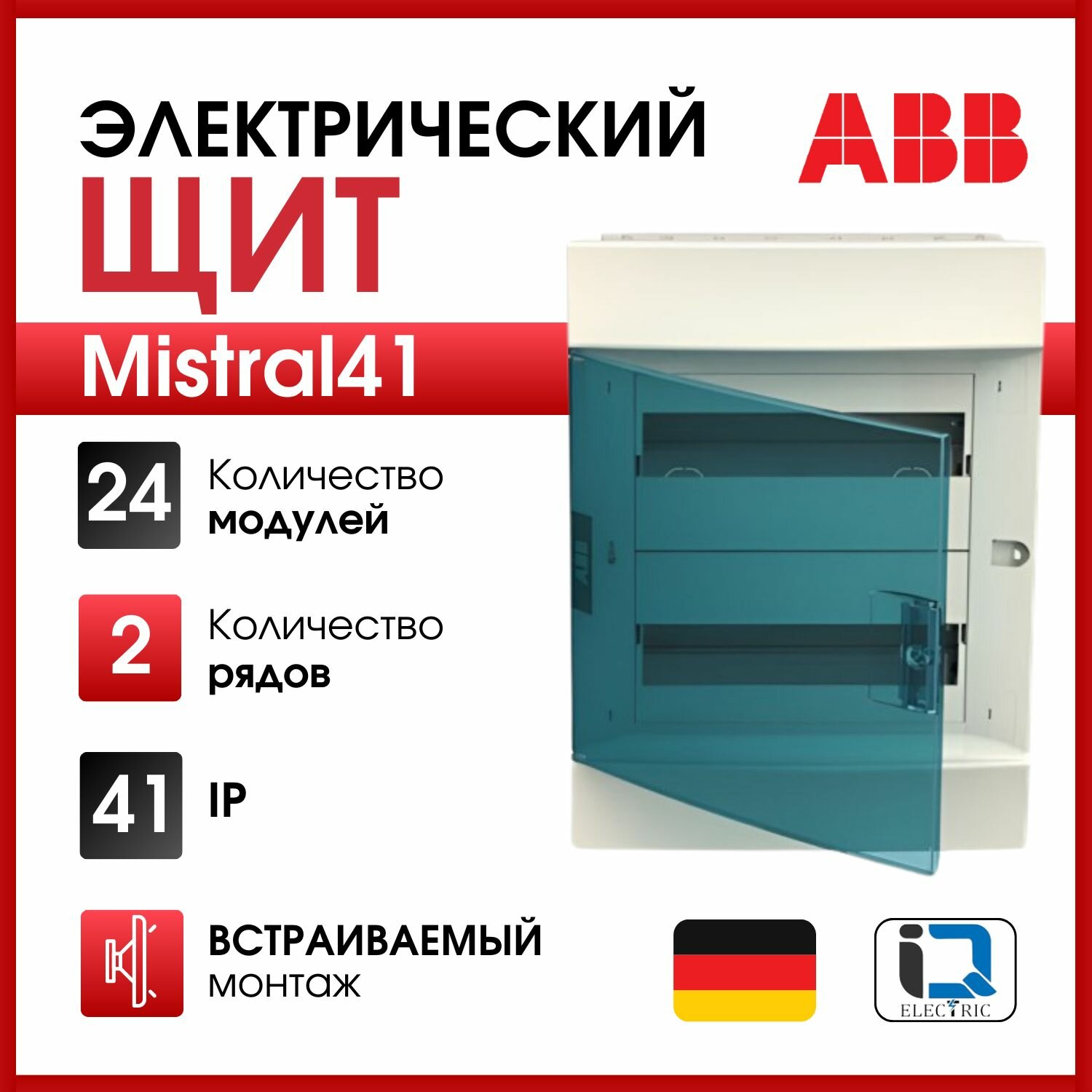 Распределительный шкаф ABB Mistral41 36 мод, IP41, 2 ряда, встраиваемый, термопласт, белая дверь, 1SLM004102A1106