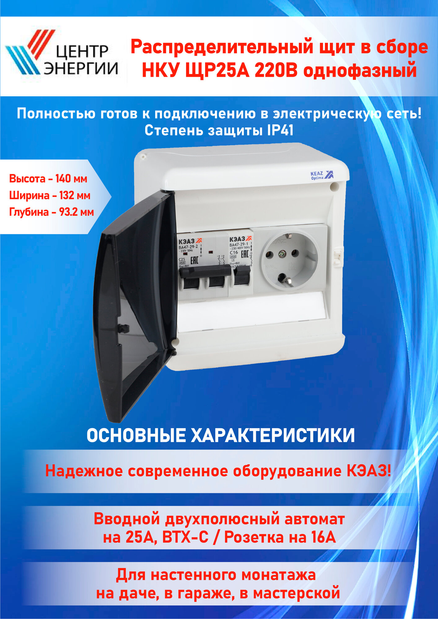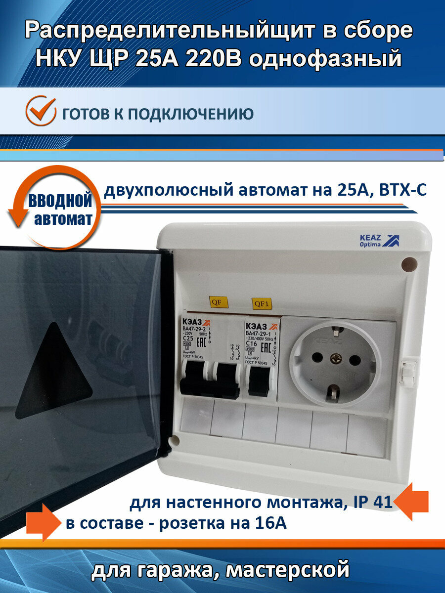 Щит распределительный, щиток электрический НКУ ЩР25А UNK-06 электрощиток для гаража, мастерской (1Х2С25, 1х1С16, розетка) c9 интересное: