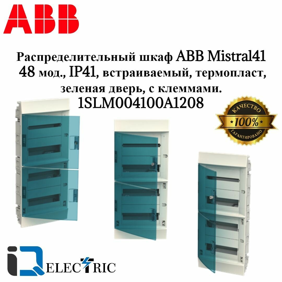 Распределительный шкаф ABB Mistral41 48 мод., IP41, встраиваемый, термопласт, зеленая дверь, 1SLM004100A1208 интересное: