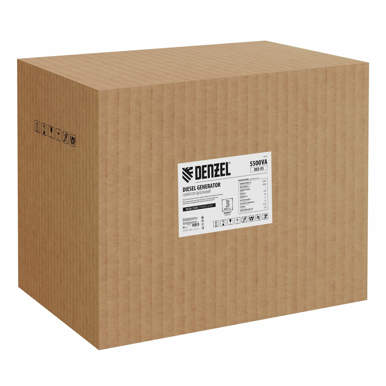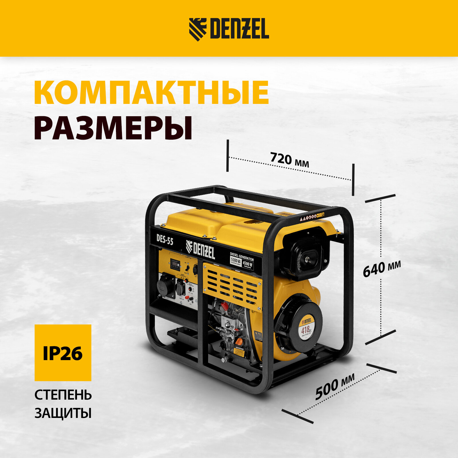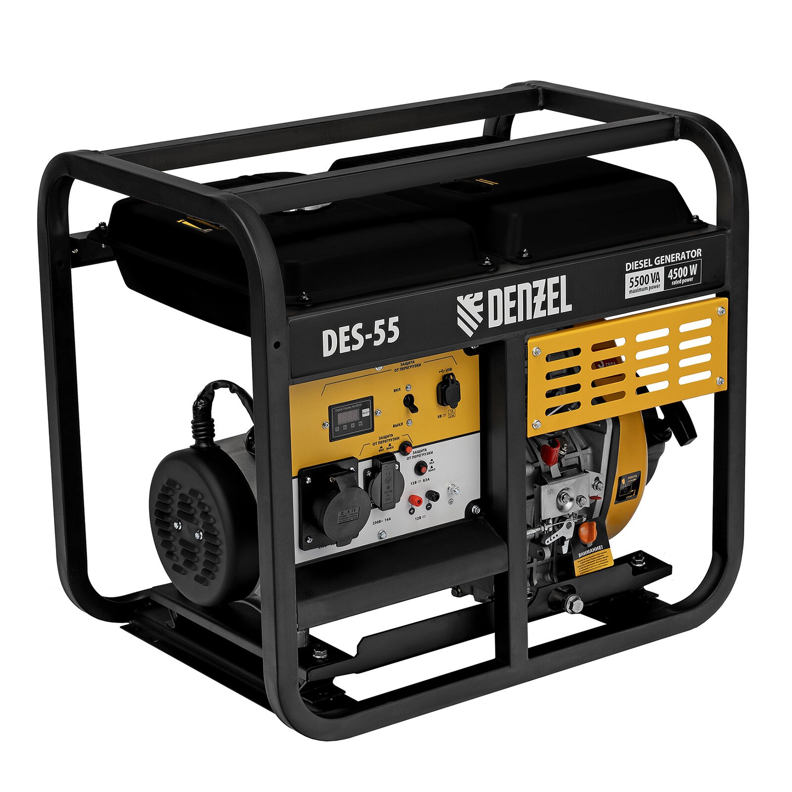 Генератор дизельный Denzel DES-55, 5,5 кВт, 230 В, 11 л, ручной стартер 94413 интересное: