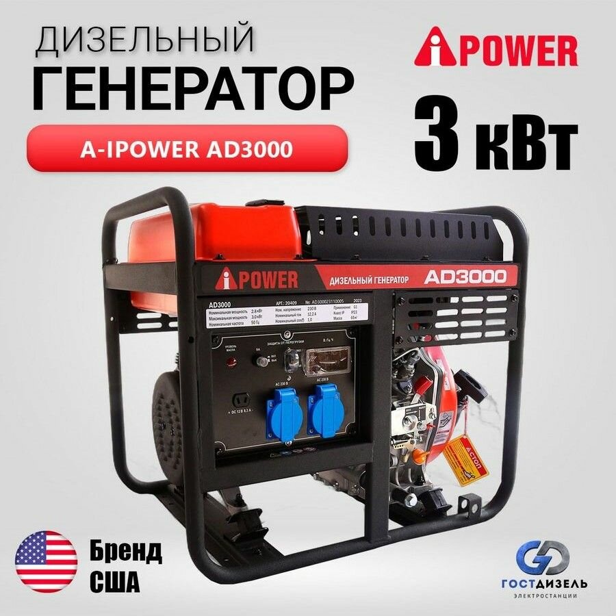 Дизельный генератор A-iPower AD3000 (3 кВт, однофазный) с ручным запуском. Надежный дизельгенератор интересное: