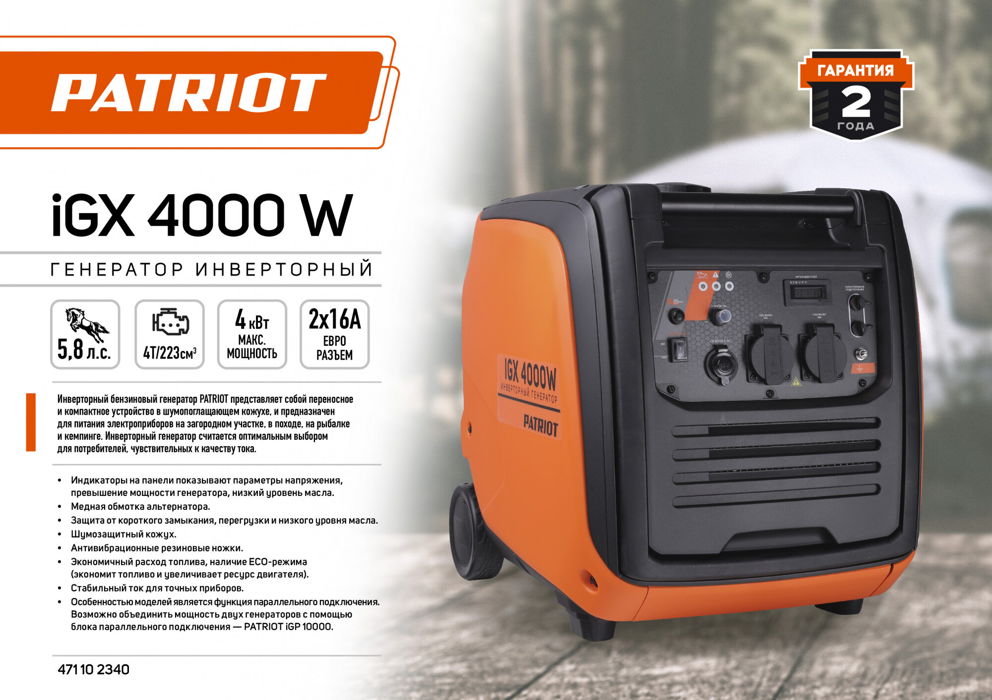 Генератор инверторный PATRIOT iGX 4000 W интересное: