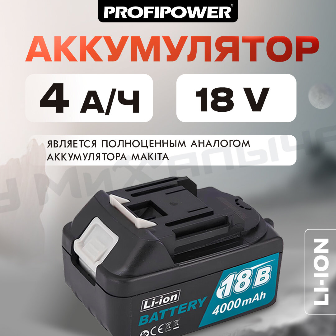 Аккумулятор для электроинструмента PROFIPOWER, 18V 4.0Ah Li-ion (совместим с Макита)