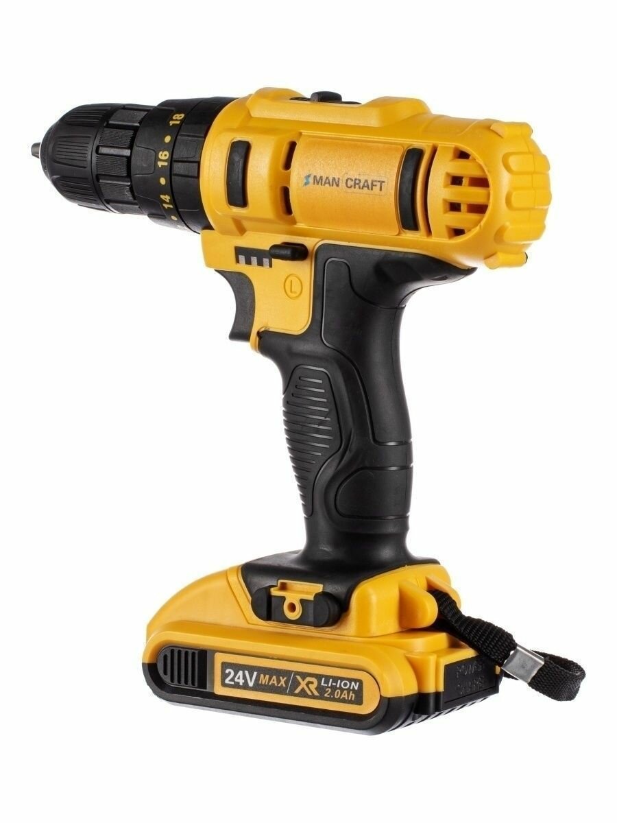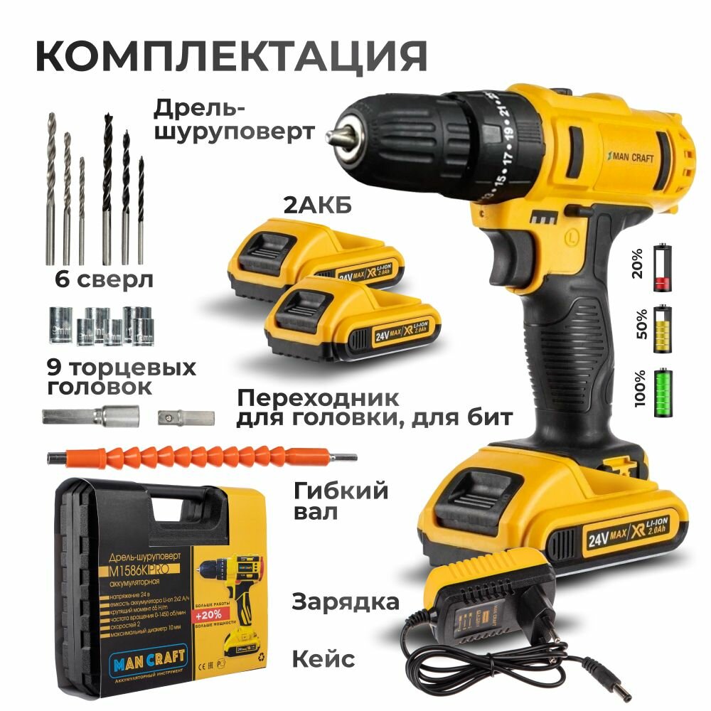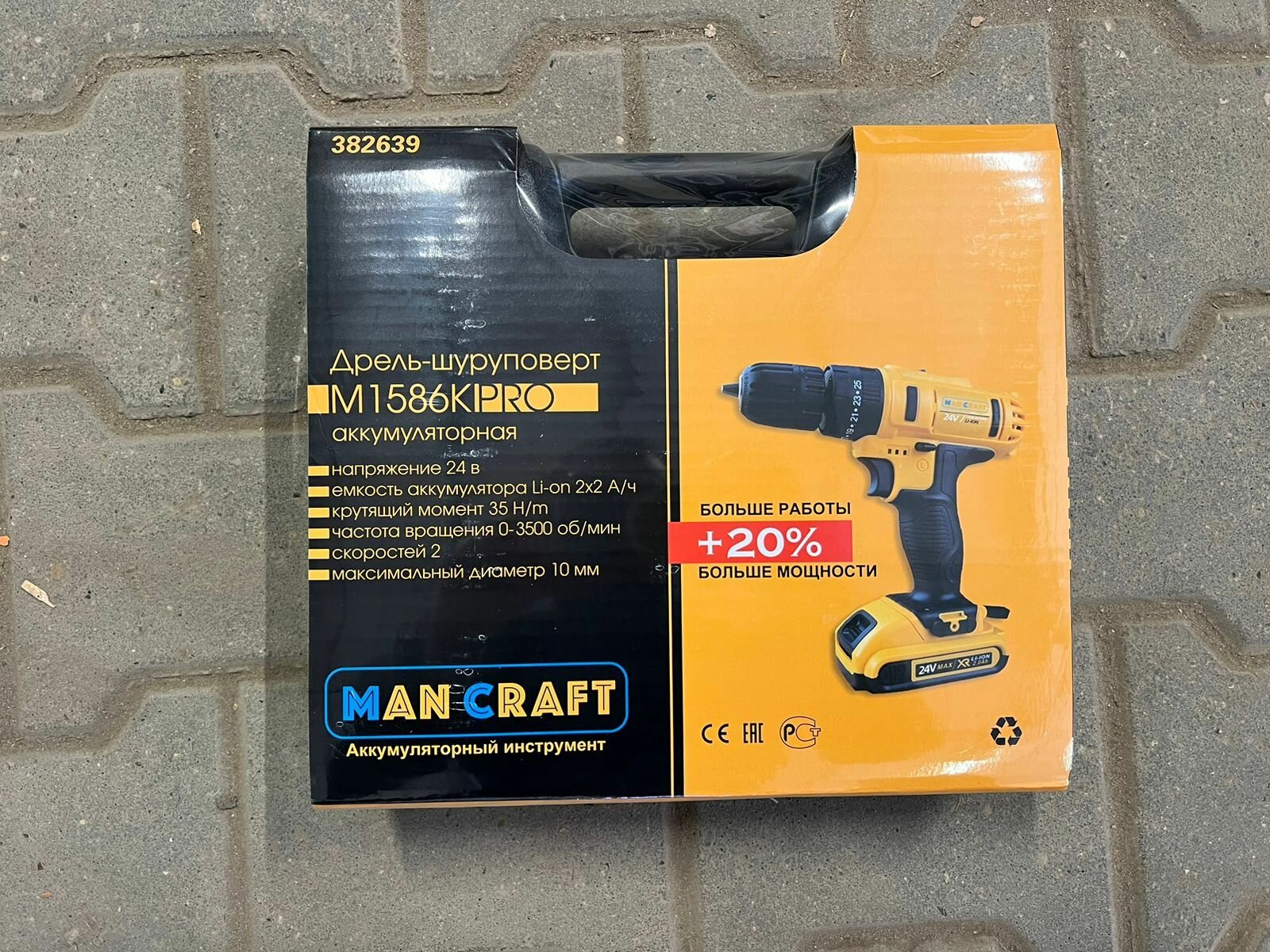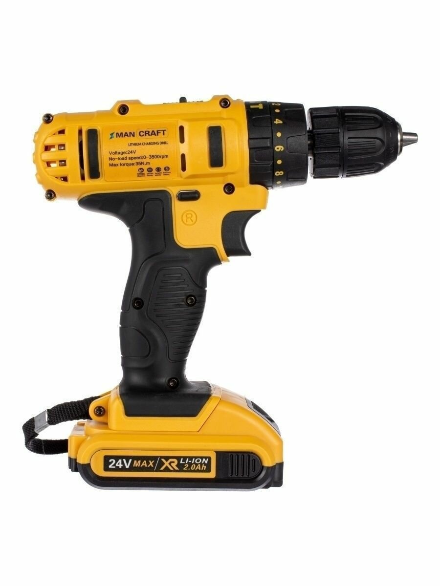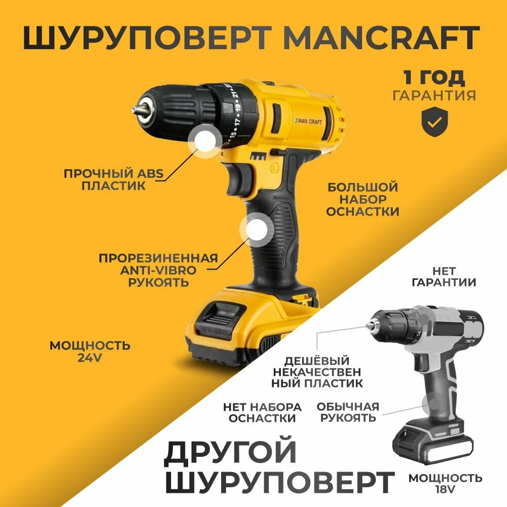 Дрель-шуруповерт MANCRAFT аккумуляторная дрель ручная с 2 скоростями 24 В, 35 Нм, 3500 об/мин, кейс + набор оснастки, строительный электроинструмент интересное: