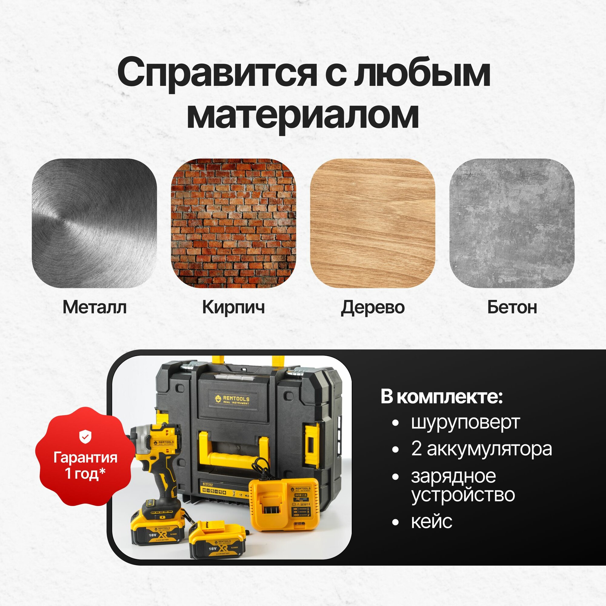 Винтоверт ударный аккумуляторный Remtools / Шуруповерт бесщеточный 18V / Импакт интересное:
