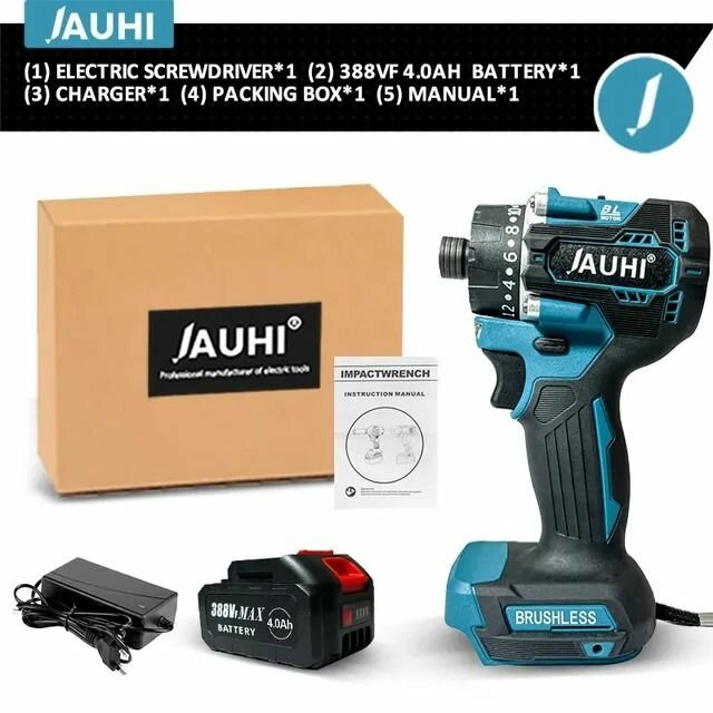 Купить Шуруповерт аккумуляторный бесщеточный JAUHI 4000об./мин с увеличенным моментом 18Вт 1 АКБ 388Vf 4000мАч