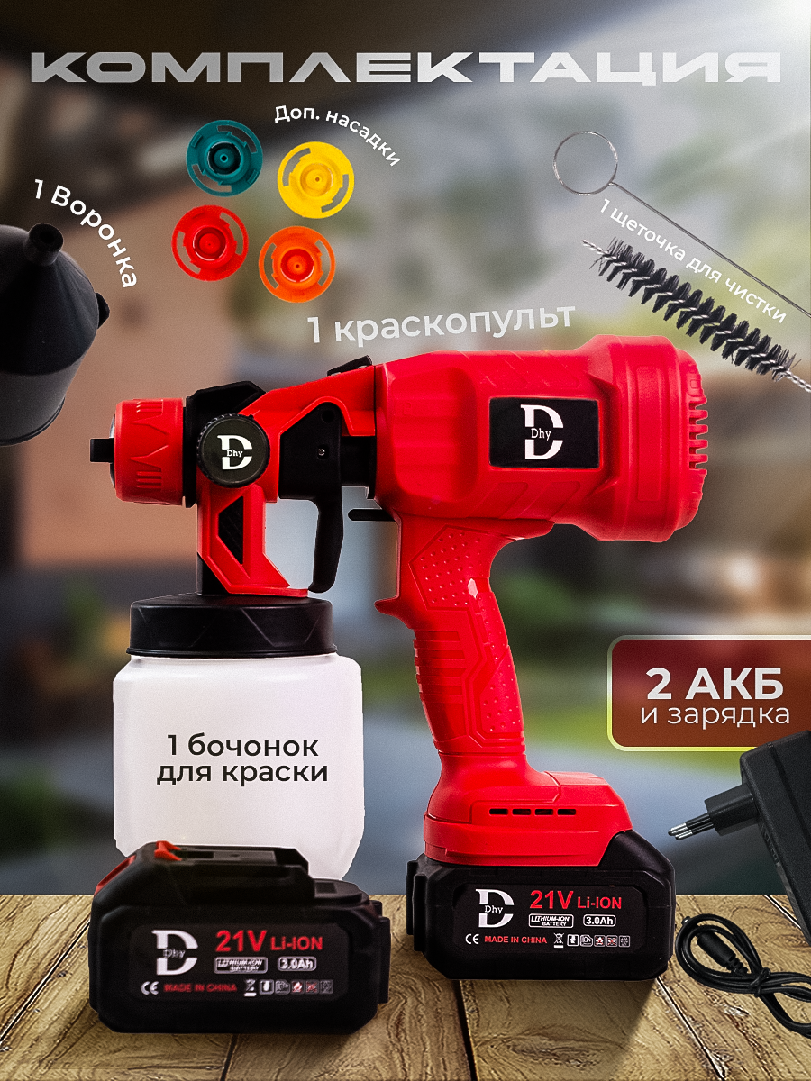 Аккумуляторный краскопульт 21V 3Ah с двумя аккумуляторами интересное: