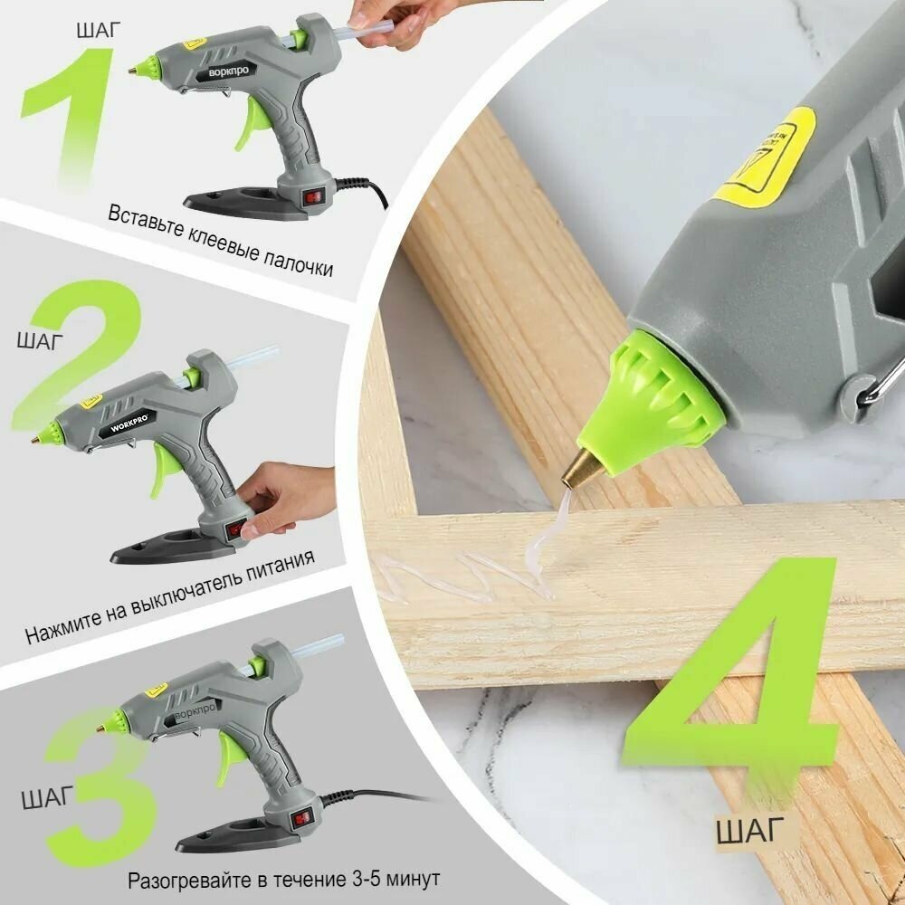 Купить Клеевой пистолет WORKPRO 60 Вт, термоклеевой пистолет с 20 стержнями премиум-класса для рукоделия, искусства, инструменты для рукоделия